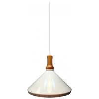 Κρεμαστό Φωτιστικό V-TAC Μεταλλικό Καπέλο Κώνος Λευκό με Ξύλινη Βάση και ντουί Ε27 Φ250mm 3761