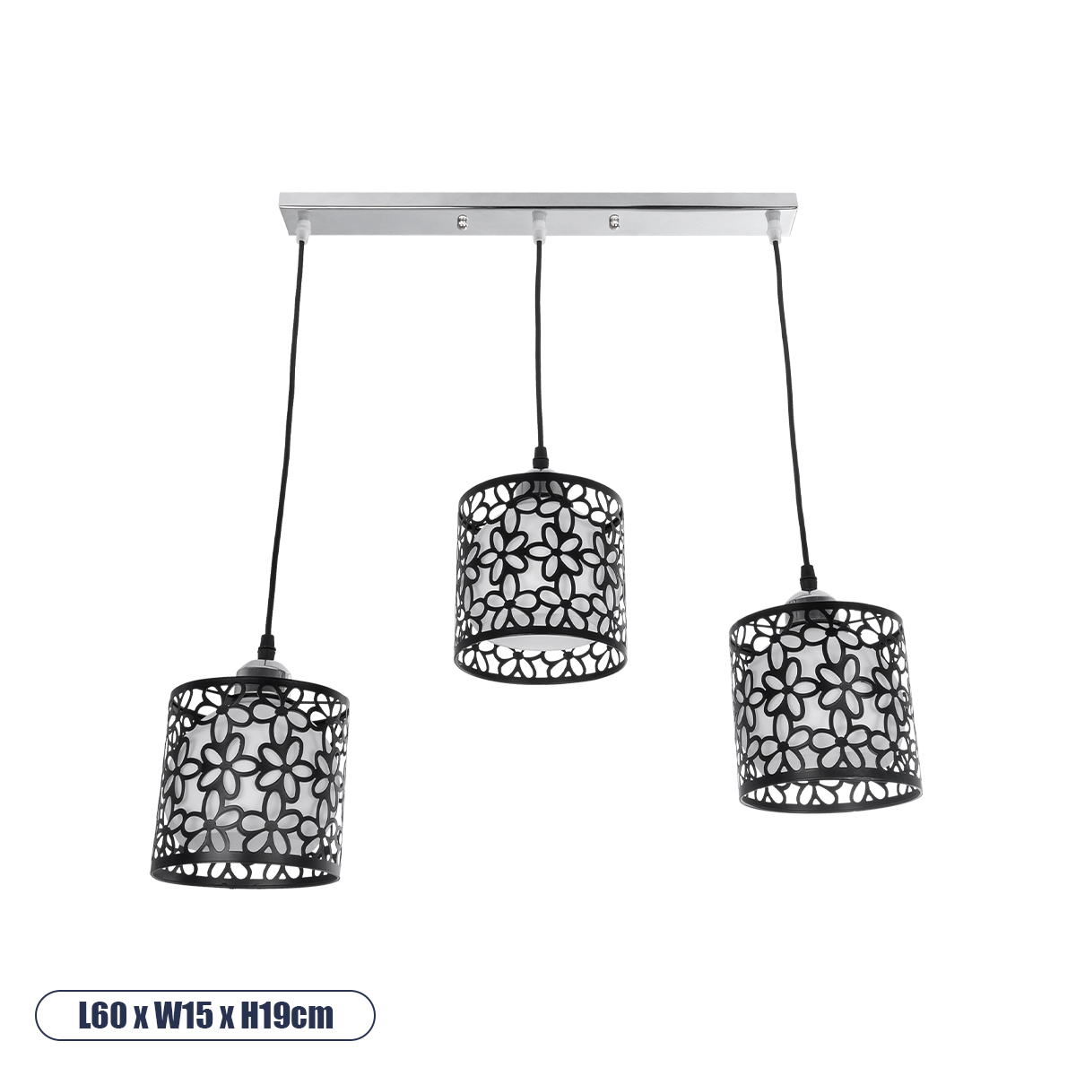GLOBOSTAR® RAINELDA 01247 Μοντέρνο Κρεμαστό Φωτιστικό Οροφής με Ντουί 3 x E27 AC 220-240V IP20 - Μαύρο & Λευκό - Μ60 x Π15 x Υ19cm