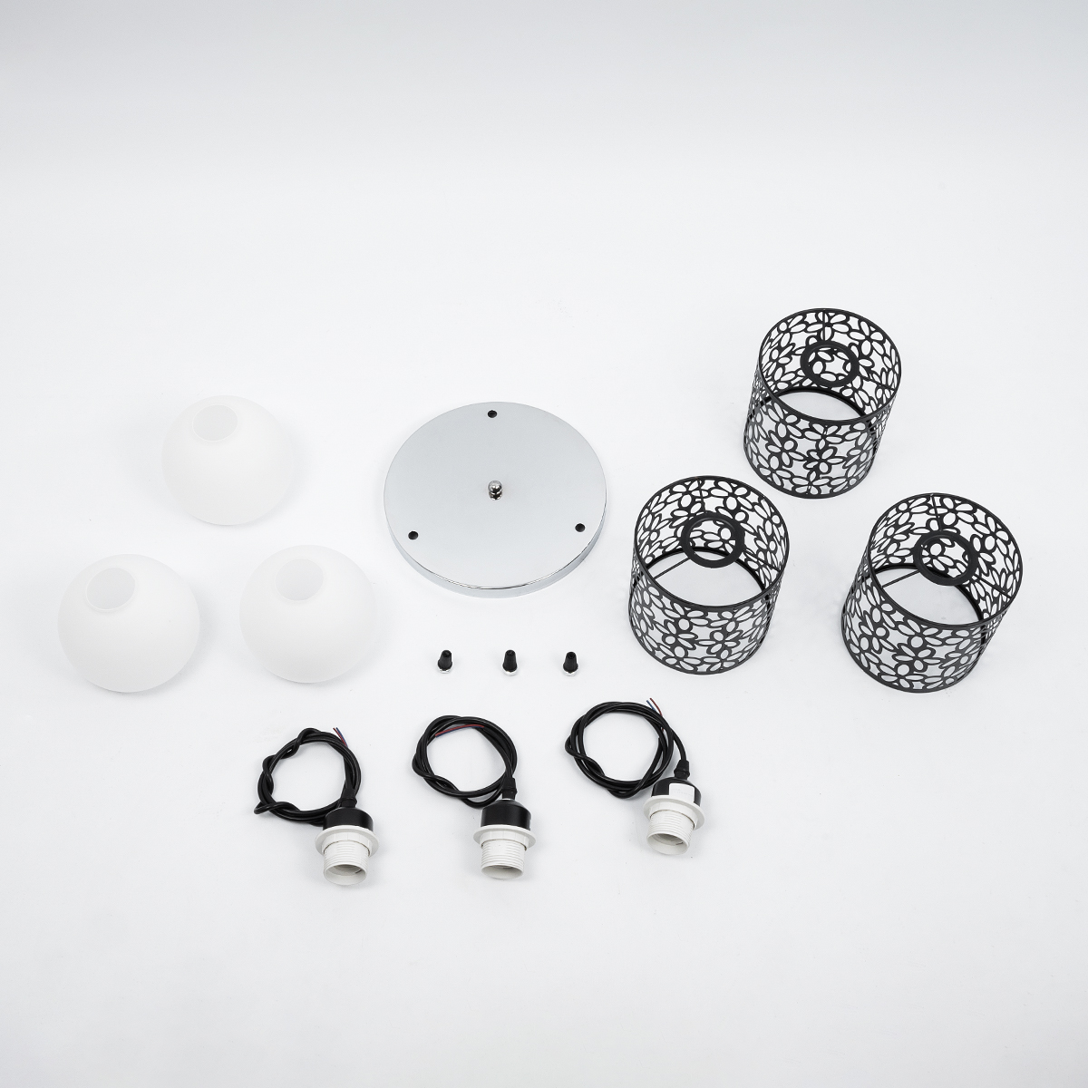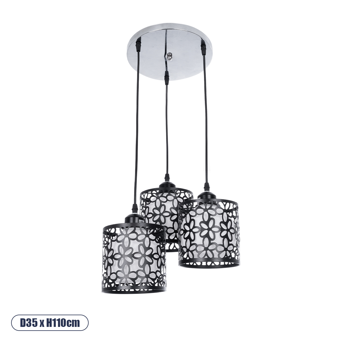 GLOBOSTAR® RAINELDA 01246 Μοντέρνο Κρεμαστό Φωτιστικό Οροφής με Ντουί 3 x E27 AC 220-240V IP20 - Μαύρο & Λευκό - Μ35 x Π35 x Υ110cm