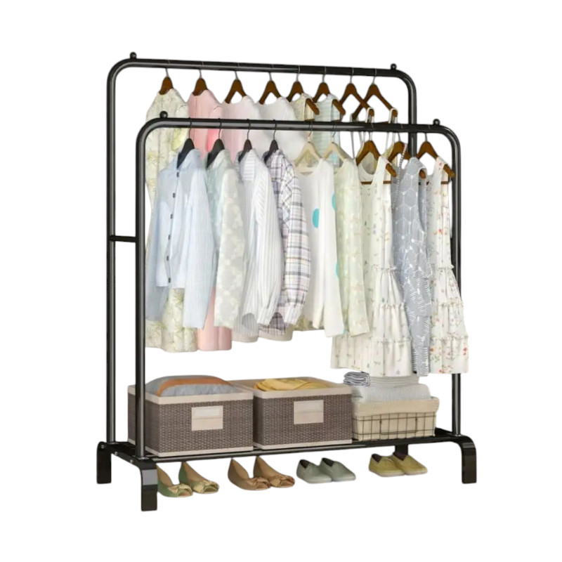 Κρεμάστρα δαπέδου μεταλλική, με 2 ράφια παπουτσιών, ιδανική ως έπιπλο εισόδου ή για την οργάνωση των ρούχων στο δωμάτιό σας.