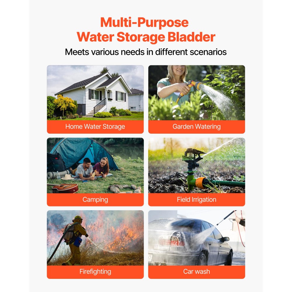 Μεγάλη χωρητικότητα 142,7 γαλονιών: Με εξαιρετικά μεγάλη χωρητικότητα 142,7 γαλονιών (540 λίτρα), αυτή η κύστη αποθήκευσης νερού VEVOR είναι ιδανική για οικιακή χρήση, κάμπινγκ, πότισμα κήπου, εγκαταστάσεις τροχόσπιτων, αντοχή στην ξηρασία και παροχή νερού έκτακτης ανάγκης. Πτυσσόμενη και φορητή, εύκολη στη μεταφορά οπουδήποτε. Μακροχρόνια χρήση: Γίνετε η αξιόπιστη λύση μακροχρόνιας αποθήκευσης νερού. Η δεξαμενή νερού για τροχόσπιτα μας είναι κατασκευασμένη από ανθεκτικό υλικό PVC διπλής στρώσης 1000D, το οποίο είναι ανθεκτικό στη βροχή, τη φωτιά και τη φθορά, εξασφαλίζοντας εξαιρετική απόδοση σε διάφορες συνθήκες. Εξαιρετική Σφράγιση: Το δοχείο αποθήκευσης νερού μας χρησιμοποιεί τεχνολογία συγκόλλησης υψηλής θερμοκρασίας και ενισχυμένες σφραγίδες στις θύρες για να εξασφαλίσει μια στεγανή και στεγανή σφράγιση. Η ισχυρή σφράγιση εξασφαλίζει επιπλέον ηρεμία για την οικιακή σας χρήση και τις υπαίθριες περιπέτειές σας. Αποδοτική αποθήκευση νερού: Αυτή η πτυσσόμενη φορητή δεξαμενή νερού διαθέτει μεγάλες θύρες εισόδου και εξόδου - με διάμετρο εισόδου OD 38mm/1,5" και ID 32mm, και διάμετρο εξόδου OD 32mm/1,25" και ID 25mm, που συνδέεται εύκολα με τον εύκαμπτο σωλήνα για γρήγορη αποθήκευση νερού. Ευρείες εφαρμογές: Αυτή η φορητή τσάντα αποθήκευσης μαλακού νερού έχει σχεδιαστεί για διάφορα σενάρια, λειτουργώντας τόσο ως λύση αποθήκευσης μη πόσιμου νερού όσο και ως σύστημα συλλογής βρόχινου νερού. Προσφέρει μια απλή και αποτελεσματική λύση για τη διαχείριση του νερού.