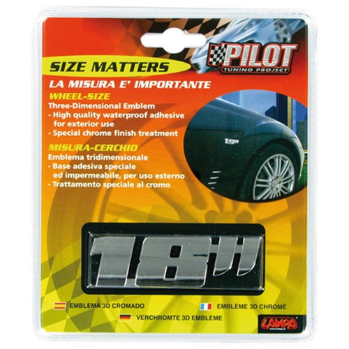 ΑΥΤΟΚΟΛΛΗΤΟ ΣΗΜΑ "18" Τρισδιάστατο αυτοκόλλητο χρωμίου, κατάλληλο για εξωτερική χρήση. Διαστάσεις: 95x27mm.