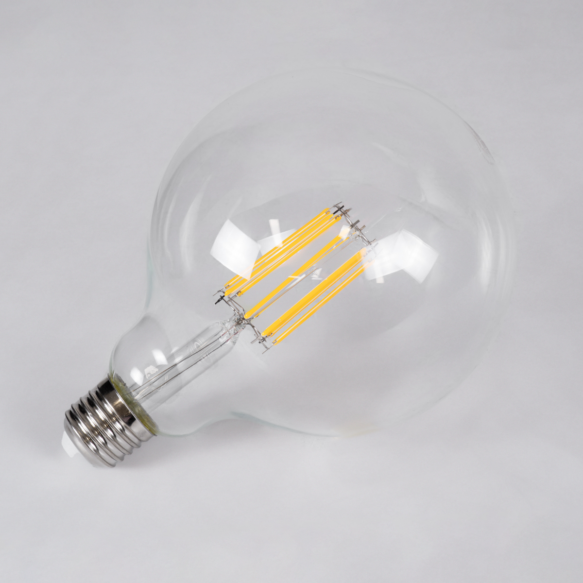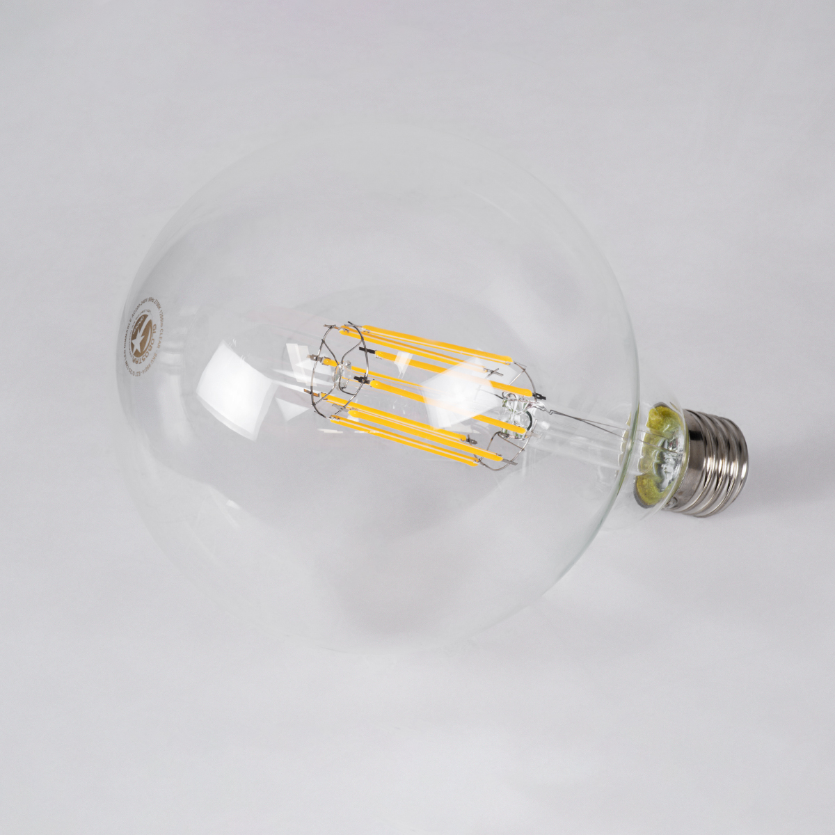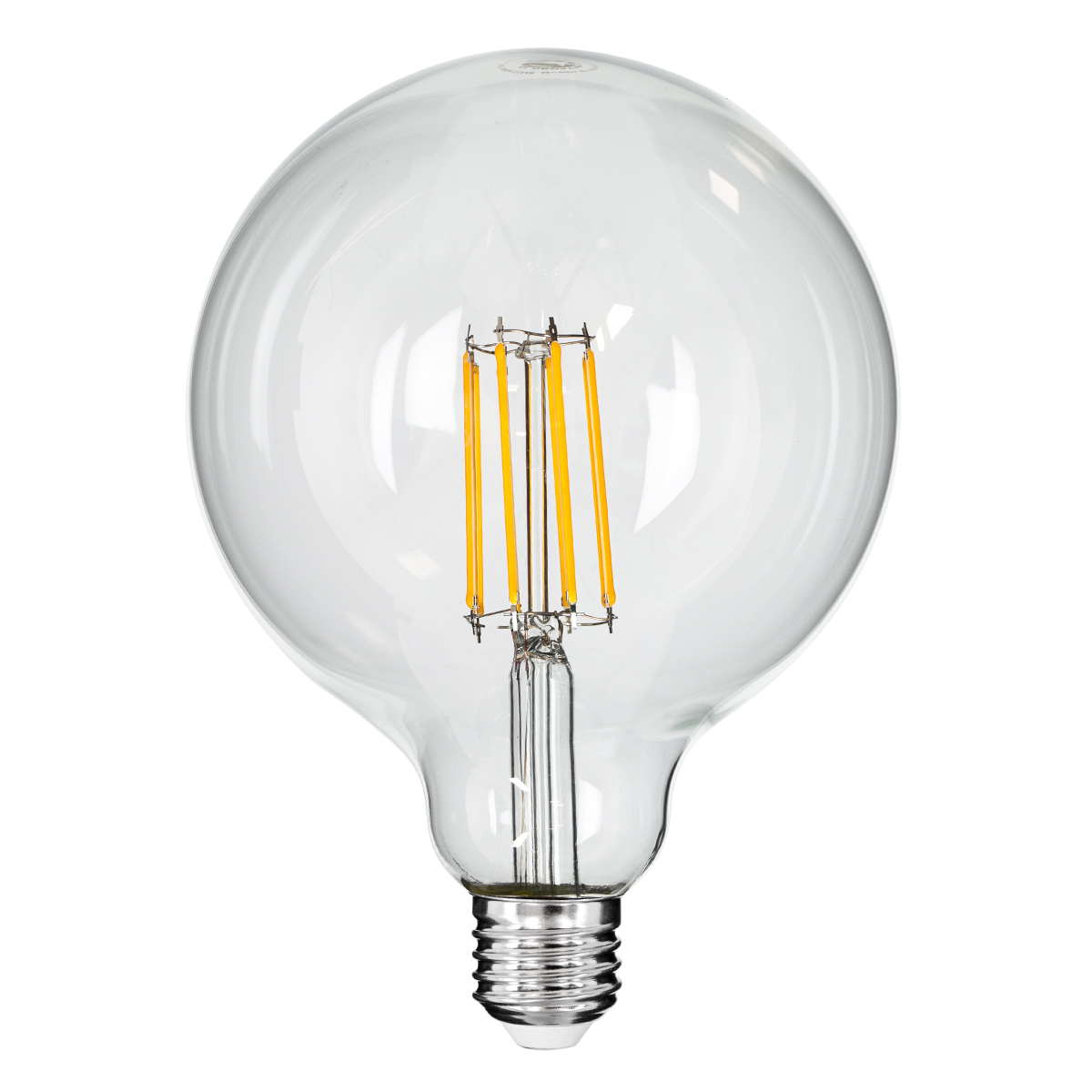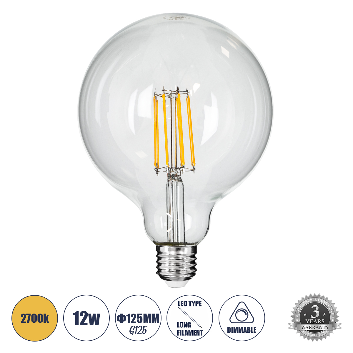 GLOBOSTAR® BUBBLE 99014 Λάμπα E27 G125 LED 12W 1200lm 360° AC 220-240V IP20 Θερμό Λευκό 2700K Dimmable - Long Filament Chip - Διάφανο - Μ12.5 x Π12.5 x Υ18cm - 3 Χρόνια Εγγύηση