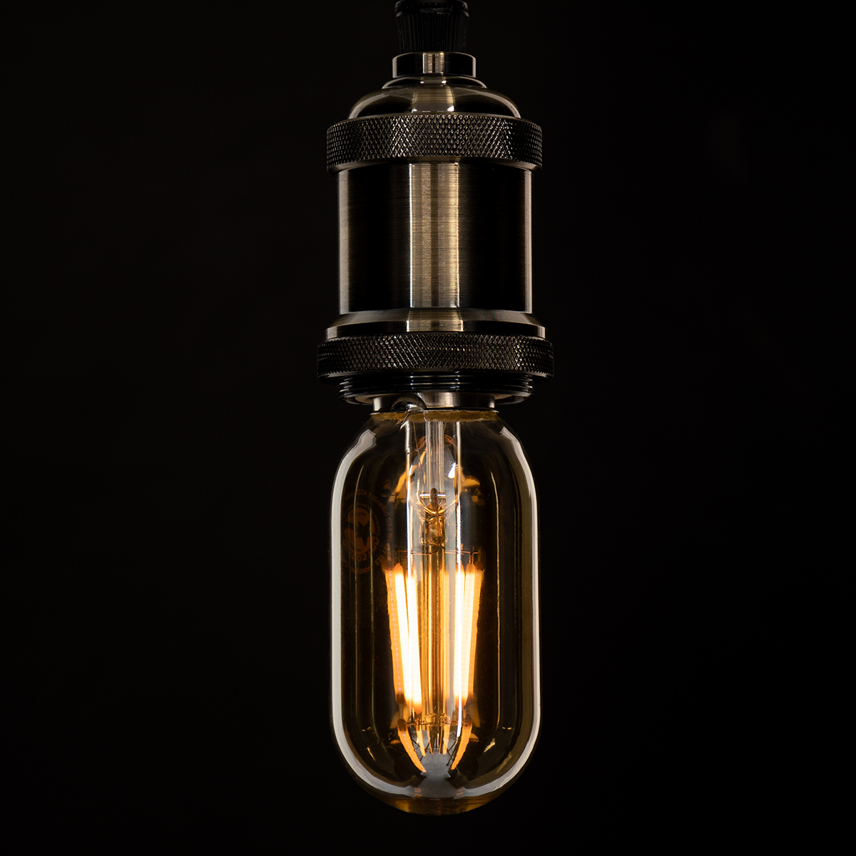 GLOBOSTAR® TUBIS 99048 Λάμπα Σωλήνας E27 T45 LED 4W 350lm 360° AC 220-240V IP20 Ultra Θερμό Λευκό 2200K Dimmable - Long Filament Chip - Μελί - Μ4.5 x Π4.5 x Υ11cm - 3 Χρόνια Εγγύηση