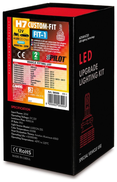 H7 12V – 20W - 6500K - 4000lm 6 LED CUSTOM FIT-1 VW/MERCEDES – 2 ΤΕΜ.