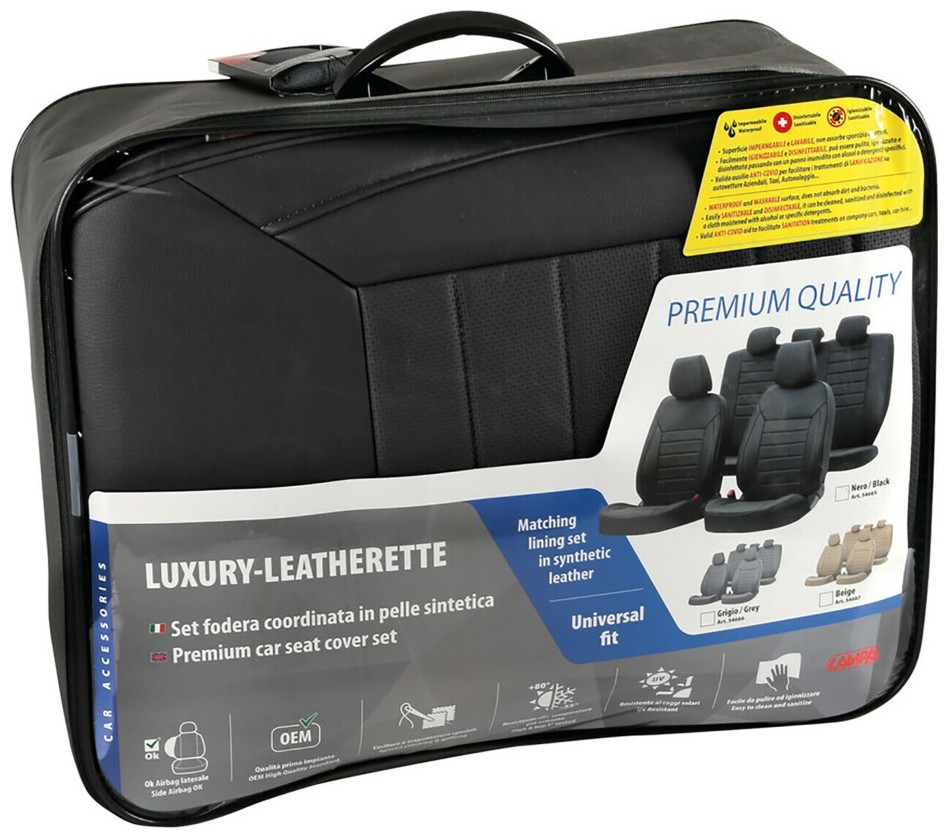 ΚΑΛΥΜΜΑΤΑ ΚΑΘΙΣΜΑΤΩΝ LUXURY LEATHERETTE ΔΕΡΜΑΤΙΝΗ ΑΦΡΩΔΕΣ ΜΑΥΡΟ -4 ΤΕΜ