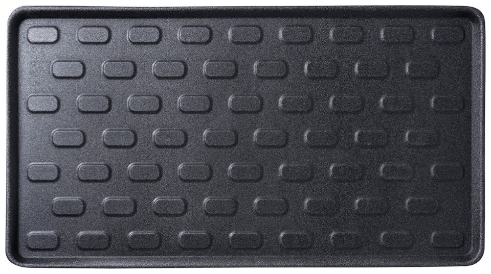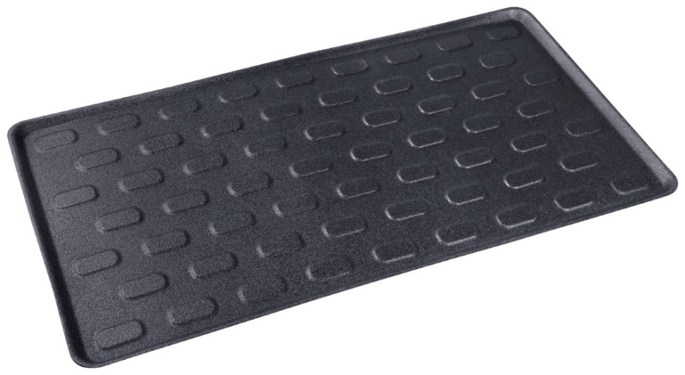Πατάκι σκάφη πορτ μπαγκάζ με universal εφαρμογή για να ταιριάζει στον χώρο αποσκευών των περισσότερων αυτοκινήτων, κατασκευασμένο από πλαστικό (πολυαιθυλένιο PE) πάχους 3 mm σε μαύρο χρώμα με ανάγλυφα οβάλ σχήματα και αντιολισθητικό πάτο, προσφέροντας ευελιξία, υψηλή προστασία, σταθερότητα και καλύτερη πρόσφυση στο δάπεδο του πορτ μπαγκάζ. Διαθέτει περιμετρικό υπεριψωμένο χείλος για να συγκρατεί τη βρωμιά, τη σκόνη, τις λάσπες, το χιόνι, την υγρασία, κτλ. στο εσωτερικό του μέρος, χωρίς να μεταφέρονται σε άλλες επιφάνειες του οχήματος. Μπορεί να πλυθεί και να καθαριστεί εύκολα για να επαναχρησιμοποιηθεί, είναι αδιάβροχο και κατάλληλο για χρήση κατά τη διάρκεια όλων των εποχών. Ιδανικό προϊόν για εσάς που θέλετε να μεταφέρετε αντικείμενα και πράγματα, τα οποία μπορεί να λερώσουν το πορτ μπαγκάζ του οχήματός σας κατά την διάρκεια οδήγησης. Εύκολη και γρήγορη χρήση.