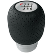 Πόμολο για λεβιέ ταχυτήτων, κατασκευασμένο από δέρμα και βάση από χρωμιωμένο αλουμίνιο. Η συσκευασία περιλαμβάνει 2 αυτοκόλλητα με ενδείξεις ταχυτήτων για να προσαρμόσετε στο πόμολο το κατάλληλο με βάσει το πως είναι διαμορφωμένο το κιβώτιο ταχυτήτων του οχήματός σας. Universal εφαρμογή, ταιριάζει στα περισσότερα αυτοκίνητα με απλό μοχλό ταχυτήτων με μέγιστη διάμετρο 15 mm, αλλά και για μοχλό που διαθέτει επιλογέα ταχυτήτων με ανύψωση ή μετατόπιση (σηκωτή ή πατητή όπισθεν) και μέγιστη διάμετρο 32 mm.