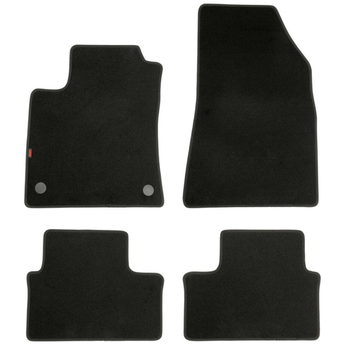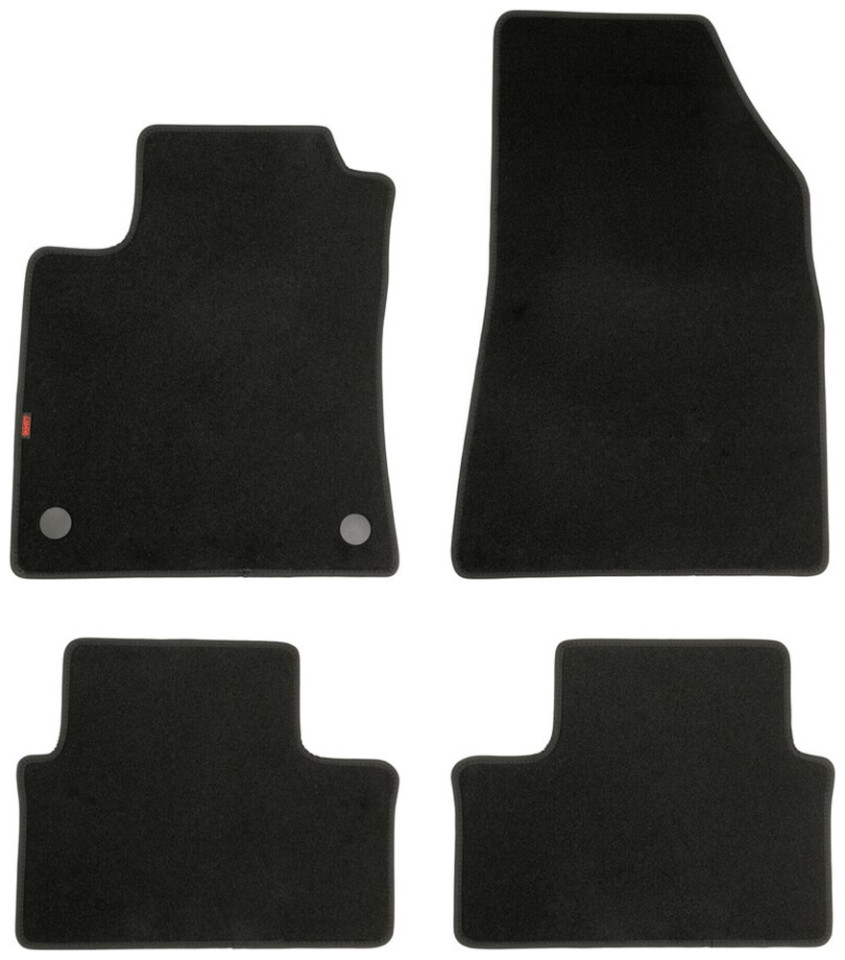 Πατάκια αυτοκινήτου από την εταιρία LAMPA, ιταλικής προέλευσης, κατασκευασμένα από υψηλής ποιότητας μοκέτα - 100% πολυπροπυλένιο - σε μαύρο χρώμα με περιμετρικό φινίρισμα από βελούρ ρέλι (απομίμηση βελούδου), σχεδιασμένα για να ταιριάζουν ακριβώς στις διαστάσεις του δαπέδου του εκάστοτε οχήματος - μαρκέ προϊόν. Είναι αδιάβροχα και διαθέτουν αντιολισθητικό πάτο ενισχυμένο με gel στο πίσω μέρος τους για καλύτερη πρόσφυση στο δάπεδο, καθώς και κουμπιά στερέωσης fix-points για όσα οχήματα είναι εξοπλισμένα με αντίστοιχες εργοστασιακές υποδοχές για να παραμένουν σταθερά στο πάτωμα της καμπίνας κατά την είσοδο/έξοδο των επιβατών.