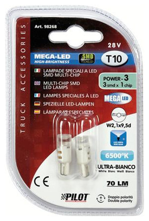 T10 24-28V W2,1x9,5d MEGA-LED3 70LM (ΔΙΠΛΗΣ ΠΟΛΙΚΟΤΗΤΑΣ) 2ΤΕΜ.