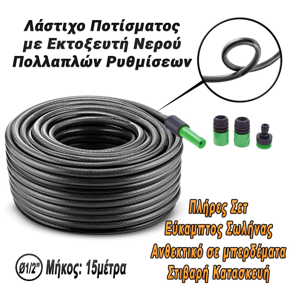 Ανακαλύψτε την απόλυτη λύση για τον κήπο ή το μπαλκόνι σας με το Λάστιχο Ποτίσματος με Εκτοξευτή Νερού Πολλαπλών Ρυθμίσεων. Αυτό το ευέλικτο και ανθεκτικό λάστιχο σας προσφέρει τη δυνατότητα να ποτίζετε τα φυτά σας με ακρίβεια και ευκολία, κάνοντας την κηπουρική μια απόλαυση. Επίσης ο Εκτοξευτής πολλαπλών ρυθμίσεων θα σας δώσει τη απαραίτητη ροή για κάθε σας εργασία! Χαρακτηριστικά: Εκτοξευτής Πολλαπλών Ρυθμίσεων: Διαθέτει εκτοξευτήρα με πολλαπλές ρυθμίσεις ψεκασμού, από απαλό ψεκασμό για ευαίσθητα φυτά έως ισχυρό πίδακα για καθαρισμό. Υψηλής Ανθεκτικότητας Υλικά: Κατασκευασμένο από ανθεκτικά υλικά που εξασφαλίζουν μακροχρόνια χρήση χωρίς φθορές. Εύκολη Χρήση: Ελαφρύ και εύκαμπτο, διευκολύνει την κίνηση γύρω από τον κήπο χωρίς να μπλέκεται. Σύνδεση Quick-Connect: Εύκολη σύνδεση και αποσύνδεση από τη βρύση με σύστημα γρήγορης σύνδεσης. Μήκος Λάστιχου: Διατίθεται σε διάφορα μήκη για να καλύψει τις ανάγκες κάθε κήπου. Οφέλη: Ευελιξία στη Χρήση: Οι πολλαπλές ρυθμίσεις του εκτοξευτήρα επιτρέπουν την προσαρμογή του ψεκασμού ανάλογα με τις ανάγκες σας. Αντοχή και Διάρκεια: Η ανθεκτική κατασκευή του εξασφαλίζει μακροχρόνια απόδοση, ακόμη και με καθημερινή, πολύωρη χρήση. Εύκολη Σύνδεση: Η γρήγορη σύνδεση και αποσύνδεση εξοικονομεί χρόνο και διευκολύνει τη χρήση. Ιδανικό για: Κηπουρούς: Τέλειο για καθημερινή χρήση στον κήπο, από το πότισμα λουλουδιών και λαχανικών έως τον καθαρισμό αυλών και πεζοδρομίων. Οικιακή Χρήση: Κατάλληλο για οικιακούς κήπους, αυλές και μπαλκόνια. Με το Λάστιχο Ποτίσματος με Εκτοξευτή Νερού Πολλαπλών Ρυθμίσεων, η ζωή σας γίνεται πιο εύκολη από ποτέ. Αναβαθμίστε τον εξοπλισμό σας!