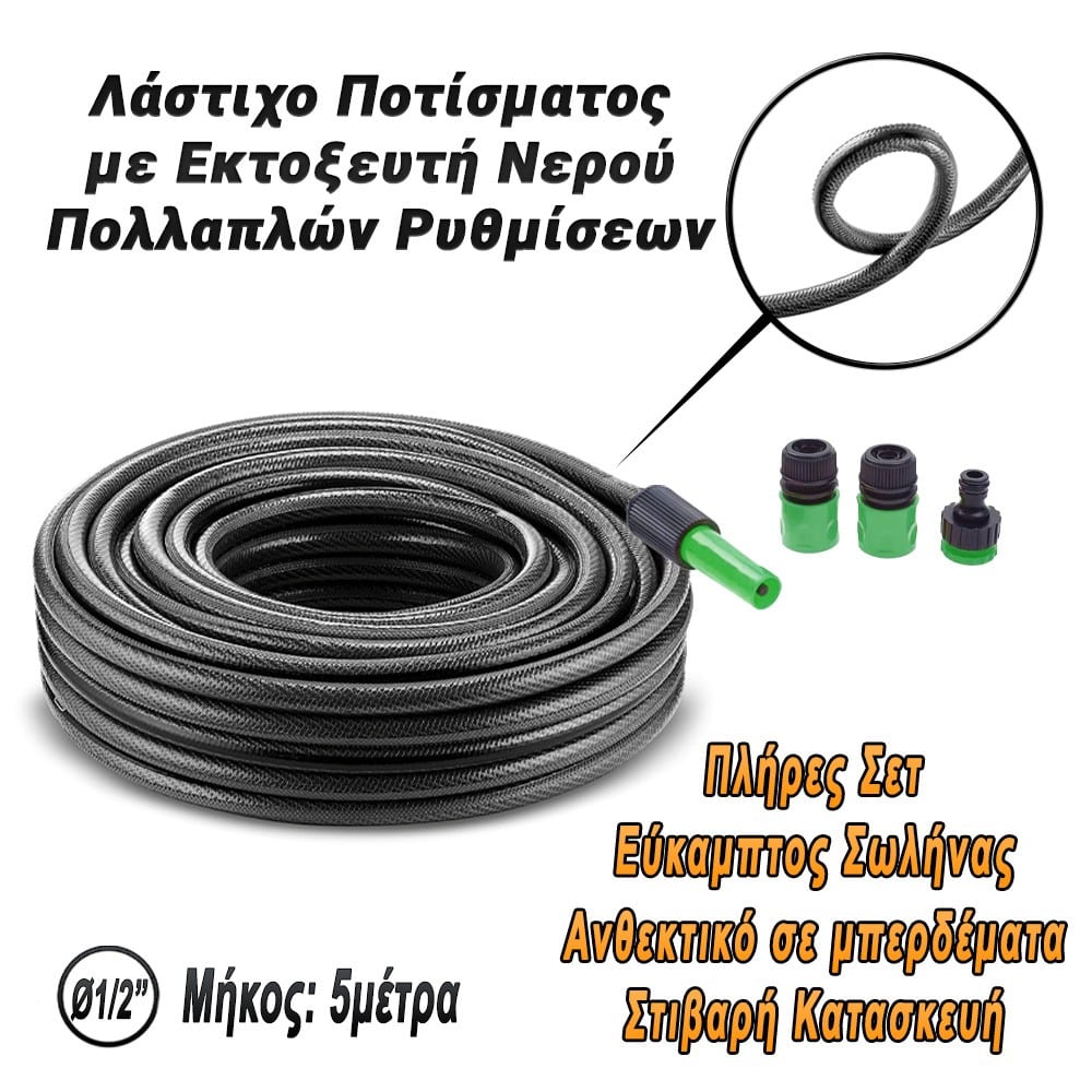 Λάστιχο Ποτίσματος με Εκτοξευτή Νερού Πολλαπλών Ρυθμίσεων 5m