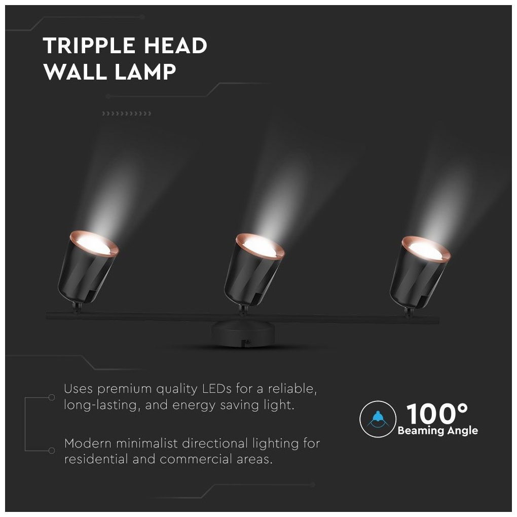 LED Φωτιστικό Σποτ Οροφής Τριπλό 3 x 6W Μαύρο Φως Ημέρας 8261
