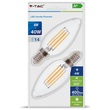 LED Λάμπα E14 Κεράκι 4W Filament V-TAC 300° 400lm 2 Τεμάχια Θερμό Λευκό 2700Κ 7365