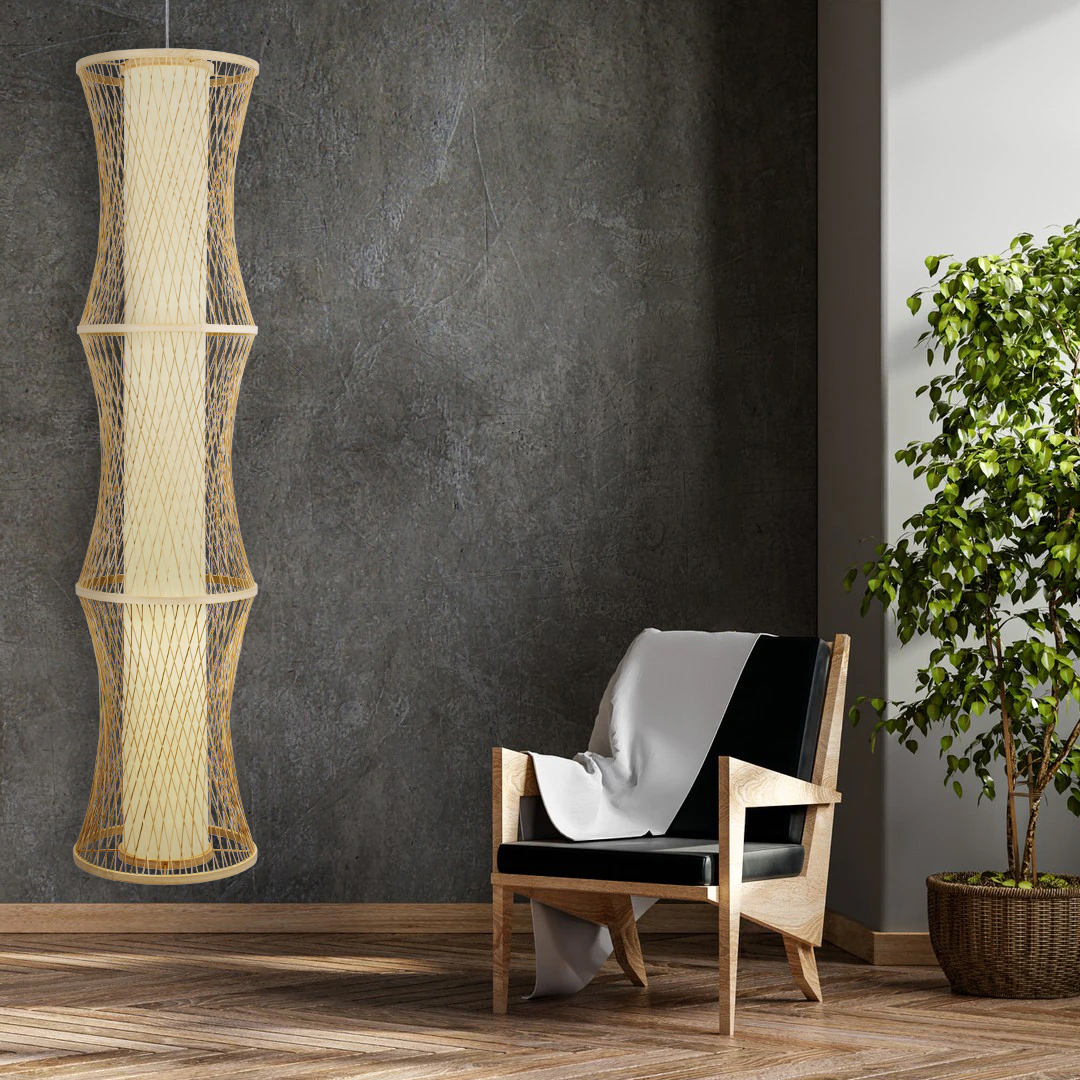 GLOBOSTAR® HIBISCUS 01783 Boho Κρεμαστό Φωτιστικό Οροφής με Ντουί 1 x E27 AC 220-240V IP20 - Μπεζ - Μ35 x Π35 x Υ150cm