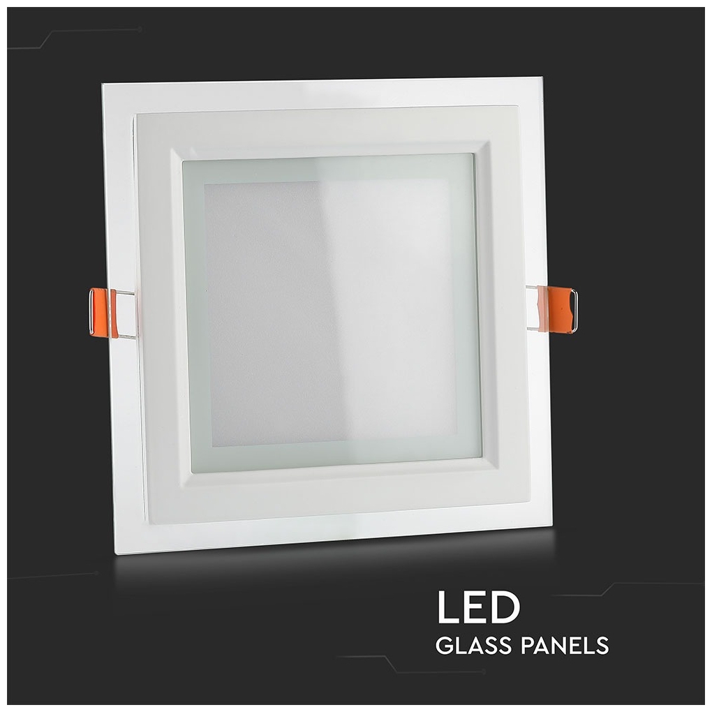 V-TAC LED panel χωνευτό 12W 3000K Θερμό λευκό Τετράγωνο γυάλινο