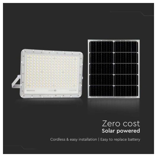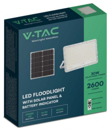 Το V-Tac VT-240W SKU 7847 είναι ένας υψηλής ποιότητας 6400K ψυχρού λευκού φωτός εξωτερικού προβολέα LED με ηλιακή ενέργεια , σχεδιασμένος να παρέχει ισχυρό και αξιόπιστο φωτισμό. Με ισχύ 30 W και την υιοθέτηση της τεχνολογίας SMD LED , αυτός ο προβολέας εγγυάται βέλτιστη φωτεινότητα σε κάθε περίσταση. Η δομή του είναι κατασκευασμένη από ανθεκτικό μαύρο αλουμίνιο , ενώ το διαφανές κάλυμμα εξασφαλίζει καθαρή και άμεση διάχυση του φωτός. Οι διαστάσεις του προβολέα είναι 355 x 260 x 55 mm.