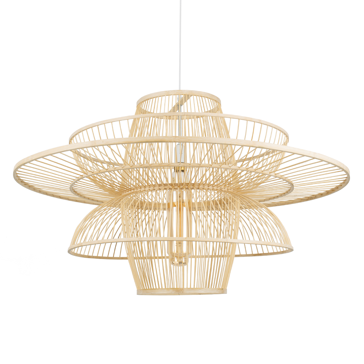 GLOBOSTAR® BALI 01758 Boho Κρεμαστό Φωτιστικό Οροφής με Ντουί 1 x E27 AC 220-240V IP20 - Μπεζ - Μ100 x Π100 x Υ60cm