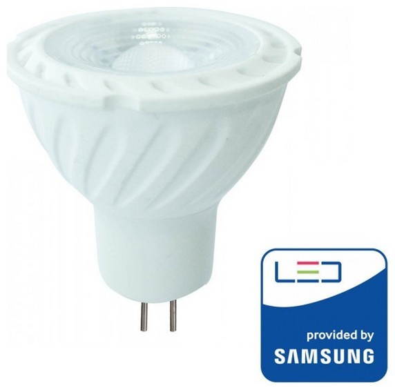 LED Σποτ VTAC MR16 (GU5.3) 12Volt 6,5Watt SAMSUNG CHIP Plastic 110° Lens Θερμό Λευκό