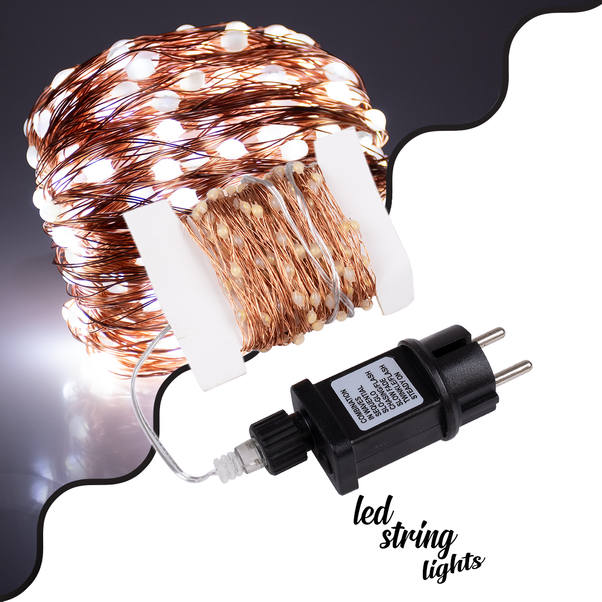 85843 Διακοσμητική Γιρλάντα 20 Μέτρα με Controller 8 Προγραμμάτων Εναλλαγών Φωτισμού - 200 LED 1.3W AC 230V με Χάλκινο Καλώδιο & Πρίζα Schuko Αδιάβροχη IP44 Ψυχρό Λευκό 6000K Μ20m