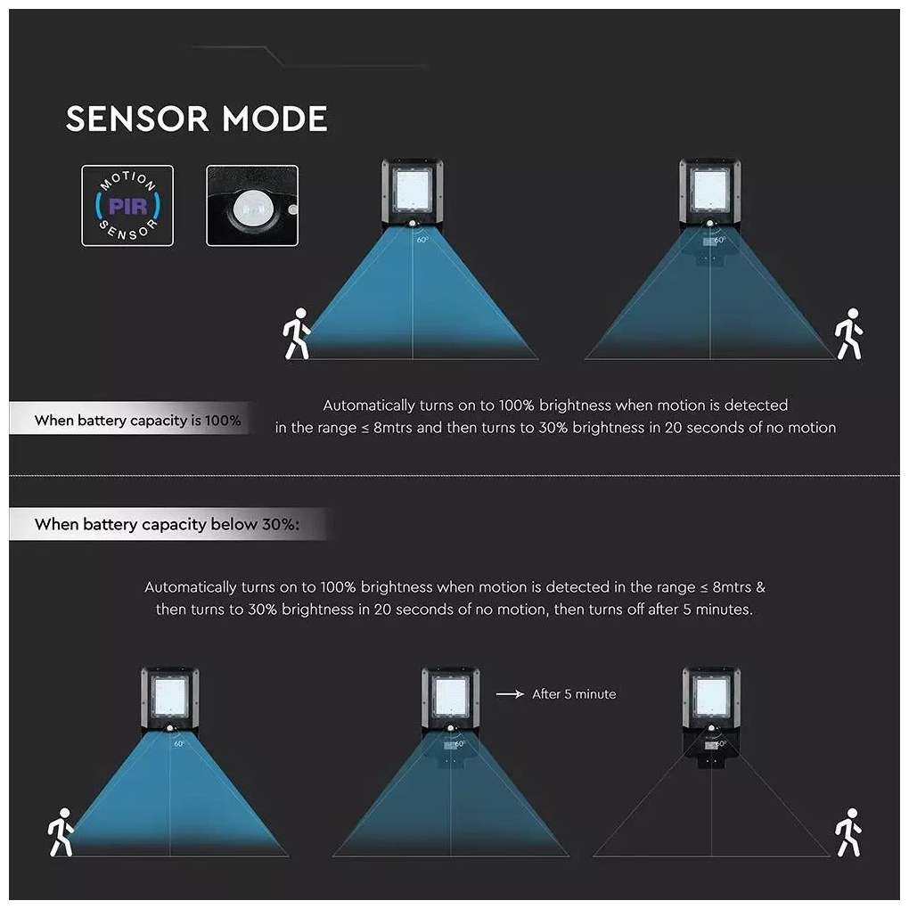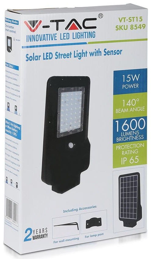 LED V-TAC Φωτιστικό Δρόμου Ηλιακό 15W Σώμα Μαύρο με Ανιχνευτή Κίνησης Φως Ημέρας 8549
