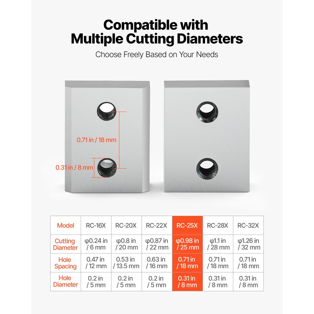 Ανθεκτικό και μακράς διαρκείας: Το ανταλλακτικό μας κόφτης σιαγόνων είναι κατασκευασμένο από ατσάλι Cr12MoV, υψηλής στιβαρότητας, η άκρη της λεπίδας δεν καμπυλώνει και δεν παραμορφώνεται εύκολα, είναι ανθεκτικό και αρκετά ανθεκτικό για μακροχρόνια χρήση. Εξαιρετικά ευέλικτο: Αυτός ο κόφτης σιαγόνων υψηλής απόδοσης είναι ιδανικός για κοπή στρογγυλού χάλυβα, χάλυβα άνθρακα, παραμορφωμένων χαλύβδινων ράβδων, τετράγωνου χάλυβα κ.λπ. Μπορεί να καλύψει τις ανάγκες κοπής για οπλισμό διαμέτρου έως 1 ίντσας 25 mm #8. Εξαιρετική απόδοση: Η άκρη της λεπίδας είναι εξαιρετικά κοφτερή, γεγονός που κόβει οπλισμό σε πολύ σύντομο χρονικό διάστημα, με κατεργασία CNC για να εξασφαλιστεί η ακρίβεια της λεπίδας και η υψηλή ακρίβεια. Αναβαθμίστε σε λεπίδες κοπής VEVOR σήμερα. Εύκολη αντικατάσταση: Η αντικατάσταση των λεπίδων είναι αρκετά εύκολη: απλώς ξεβιδώστε τις βίδες, αφαιρέστε τις παλιές λεπίδες και αντικαταστήστε τις με τις καινούργιες, απλή και ευέλικτη λειτουργία. Αντικαταστήστε σε λίγα λεπτά, κόψτε σαν καινούργιες. Υψηλή Συμβατότητα: Προσφέρουμε μια ποικιλία από λεπίδες με διαφορετικές διαμέτρους κοπής για την επιλογή σας και παρέχουμε ένα σετ εξαρτημάτων βιδών υψηλής ποιότητας για να διασφαλίσουμε την εύκολη εγκατάσταση. Οι λεπίδες μας έχουν σχεδιαστεί για ευελιξία και ακρίβεια.