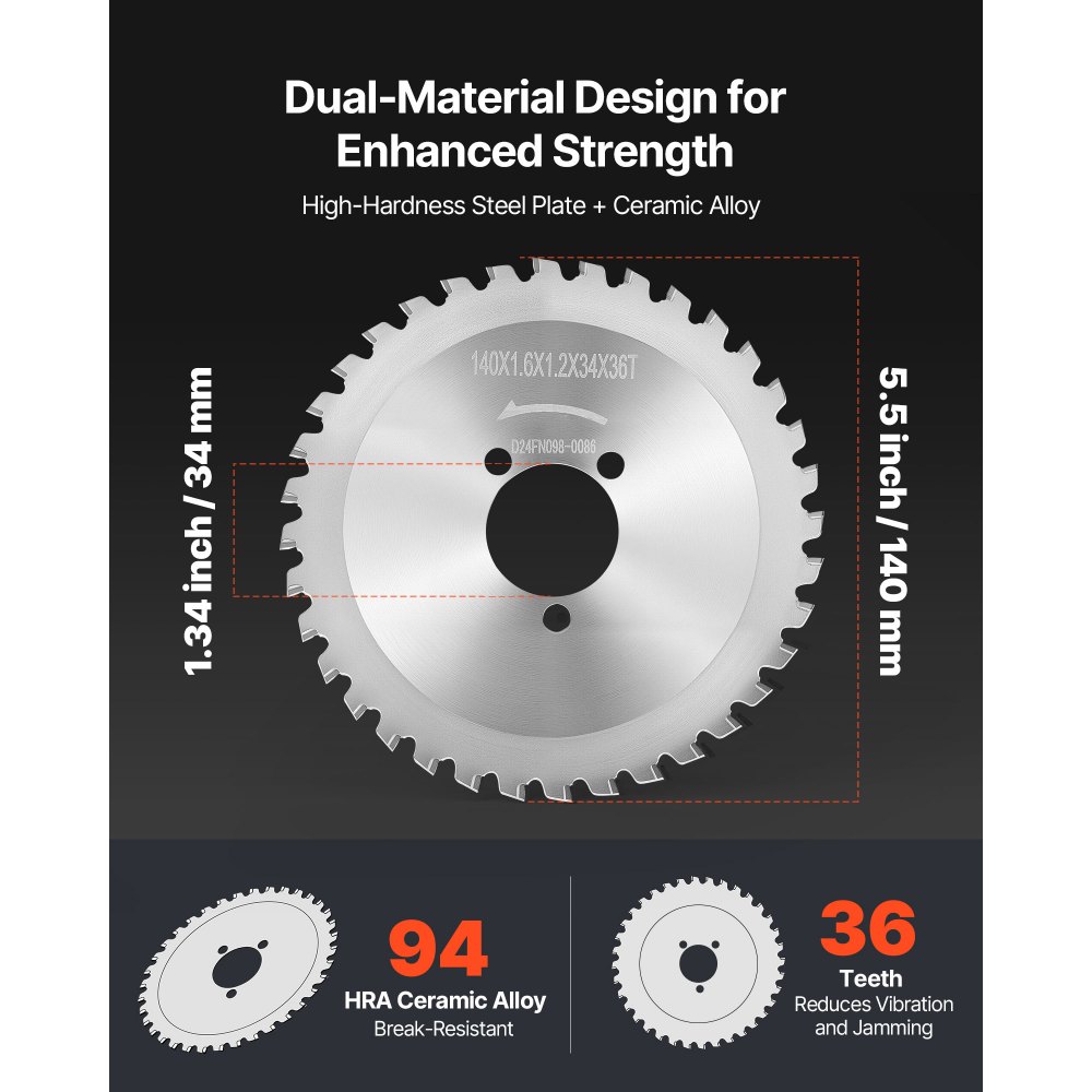 Υψηλή συμβατότητα: Ακριβής εφαρμογή, χωρίς τροποποιήσεις, χωρίς λείανση. Εγκαταστήστε και κόψτε αμέσως. Για ηλεκτρικούς κόφτες οπλισμού VEVOR. Ιδανικό ως ηλεκτρική λεπίδα κοπής οπλισμού. Εξωτερική διάμετρος 140 mm, άξονας 34 mm. γρήγορες αλλαγές επί τόπου σε λίγα λεπτά. Υψηλή αντοχή: Ο χάλυβας SK51 με εξαιρετικά σκληρές άκρες από κεραμικό κράμα προσφέρει μεγάλη διάρκεια ζωής και αντοχή σε κρούσεις. Η γεωμετρία των 36 δοντιών μειώνει τους κραδασμούς και το μπλοκάρισμα για ταχύτερες και ομαλότερες κοπές, όλα όσα θέλετε σε μια λεπίδα κοπής οπλισμού Πολυχρηστικότητα σε πολλαπλά υλικά: Βελτιστοποιημένο για οπλισμό, αλλά κόβει επίσης εύκαμπτους σωλήνες PVC, χάλκινους σωλήνες, αλουμίνιο και ξύλο με καρφιά. Μια ιδανική φορητή λεπίδα κοπής οπλισμού για φορητές διατάξεις λεπίδας κοπής οπλισμού, λιγότερες αλλαγές εργαλείων, υψηλότερη απόδοση Ποιότητα καθαρής κοπής: Παράγει ευθείες, τακτοποιημένες εγκοπές με ελάχιστη θερμότητα ή αποχρωματισμό, συχνά χωρίς να απαιτείται δευτερεύουσα λείανση. Λειτουργεί επίσης ως ανταλλακτική λεπίδα ψαλιδιού οπλισμού για συνεχή, αποτελεσματική κοπή. Ανθεκτικότητα μεγάλης διάρκειας: Η ακριβής θερμική επεξεργασία βοηθά στην ελαχιστοποίηση της μαλάκυνσης και της παραμόρφωσης υπό παρατεταμένα φορτία, διατηρώντας την λεπίδα κοπής οπλισμού πιο κοφτερή για μεγαλύτερο χρονικό διάστημα και μειώνοντας τον χρόνο διακοπής λειτουργίας από τις συχνές αλλαγές ταχυτήτων.