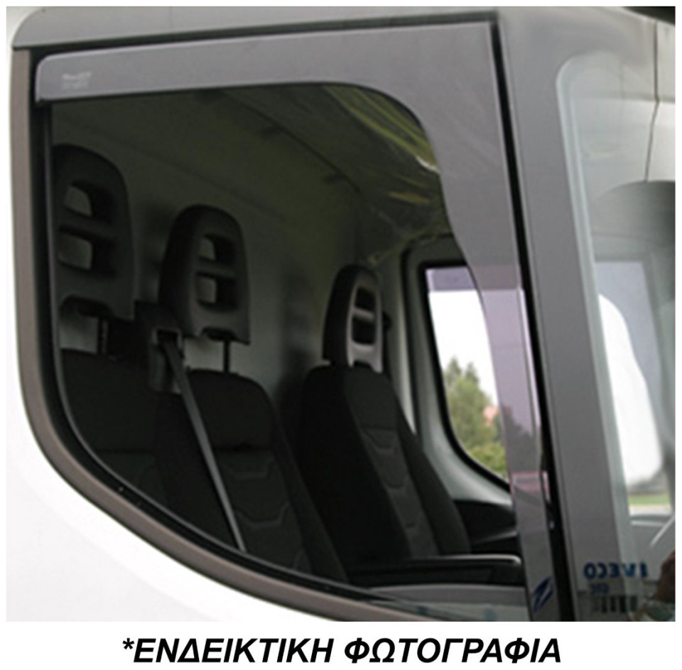 Ειδικά σχεδιασμένοι (μαρκέ) για να ταιριάζουν ακριβώς στα παράθυρα του φορτηγού, αποτελούν ιδανικό αξεσουάρ για να προστατεύουν πλήρως τον οδηγό και τον συνοδηγό από άμεση επαφή με τον εισερχόμενο αέρα κατά τη μεταφορά τους, ενώ λόγω της φυσικής κλίσης τους, απωθούν τη βροχή απομακρύνοντας τη, εμποδίζοντας τις σταγόνες να μπουν στην εσωτερική καμπίνα, ακόμη και όταν τα παράθυρα είναι ανοικτά. Βοηθούν στη μείωση της σκόνης και της βρωμιάς επάνω στα τζάμια, προλαμβάνουν το θάμπωμα των τζαμιών κατά τη χειμερινή περίοδο ή τις βροχερές μέρες και επιτρέπουν τον εξαερισμό του εσωτερικού χώρου. Έχουν μοντέρνο, κομψό σχεδιασμό με τέλεια εφαρμογή (με εσοχή στο ύψος του καθρέφτη) χωρίς να εμποδίζουν την ορατότητα. Εύκολη και γρήγορη τοποθέτηση.