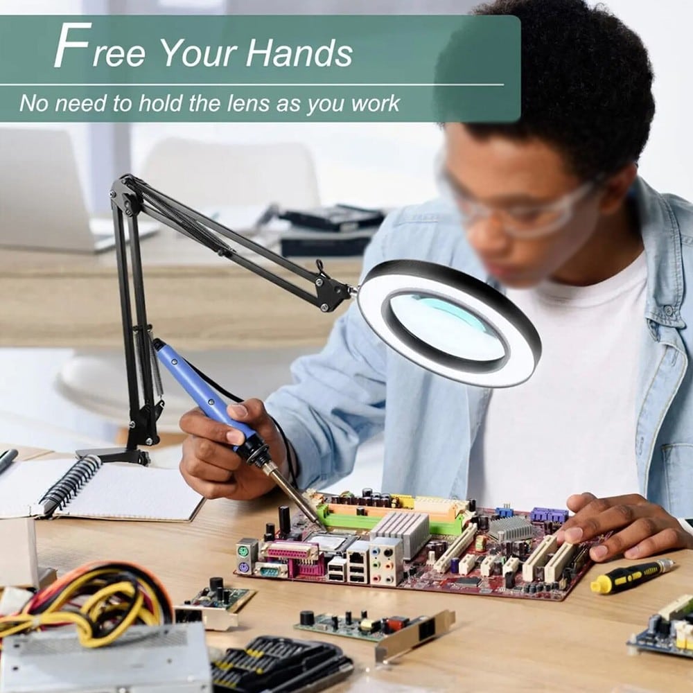 Μεγενθυντικός Φακός Πάγκου με Φωτισμό LED 3 Επιπέδων – Ιδανικό για Ακριβείς Εργασίες Λεπτομέρειας! Ο Μεγενθυντικός Φακός Πάγκου με Φωτισμό LED 3 Επιπέδων είναι το απόλυτο εργαλείο για επαγγελματίες και DIY χρήστες που χρειάζονται ακριβή εργασία και εξαιρετική ορατότητα. Με ενσωματωμένο φωτισμό LED και δυνατότητα ρύθμισης σε 3 επίπεδα φωτεινότητας, προσφέρει καθαρή εικόνα και τέλεια φωτισμένη επιφάνεια για εργασίες λεπτομέρειας. Χαρακτηριστικά: ✔ Μεγέθυνση Υψηλής Ποιότητας – Ιδανικός για εργασίες όπως μοντελισμός, ηλεκτρονικές επισκευές, χειροτεχνίες και άλλες εργασίες που απαιτούν υψηλή ακρίβεια.✔ Φωτισμός LED 3 Επιπέδων – Ρυθμίστε την ένταση του φωτισμού σύμφωνα με τις ανάγκες σας για άψογη ορατότητα σε όλες τις συνθήκες φωτισμού.✔ Εργονομικός Σχεδιασμός – Εύκολος στη χρήση με σταθερή βάση για να παραμείνει στη θέση του κατά τη διάρκεια της εργασίας.✔ Μεγενθυντικός Φακός – Παρέχει μεγέθυνση χωρίς παραμόρφωση για ακριβείς εργασίες ακόμη και στις πιο μικρές λεπτομέρειες. Ο Μεγενθυντικός Φακός Πάγκου με Φωτισμό LED 3 Επιπέδων είναι το τέλειο εργαλείο για να αναλάβετε ακόμα και τις πιο απαιτητικές εργασίες με άνεση και ακρίβεια!