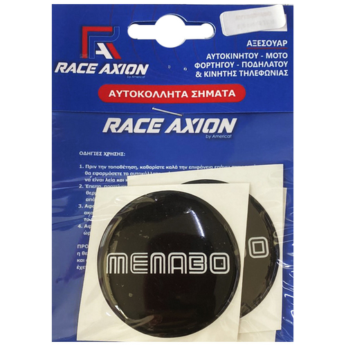 Αυτοκόλλητα σήματα ζαντών MENABO με επικάλυψη σμάλτου για πρόσθετη σκληρότητα υλικού, κατάλληλα για τοποθέτηση στο κέντρο των ζαντών ή στα τάσια των τροχών του αυτοκινήτου για την αντικατάσταση των ήδη υπαρχόντων σημάτων σε περίπτωση φθοράς από τον ήλιο, κλοπής, κτλ., καθώς και για την διακόσμηση του εξωτερικού του οχήματος. Εύκολη και γρήγορη χρήση/τοποθέτηση.