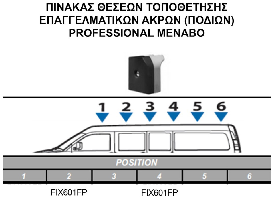 Οι μπάρες τοποθετούνται με τα ενδεδειγμένα από τον κατασκευαστή ειδικά άκρα (πόδια) επάνω στην οροφή του οχήματος με βάση τη μάρκα, το μοντέλο, τη χρονολογία, καθώς και τις υποδοχές - fixpoints που μπορεί να διαθέτει.