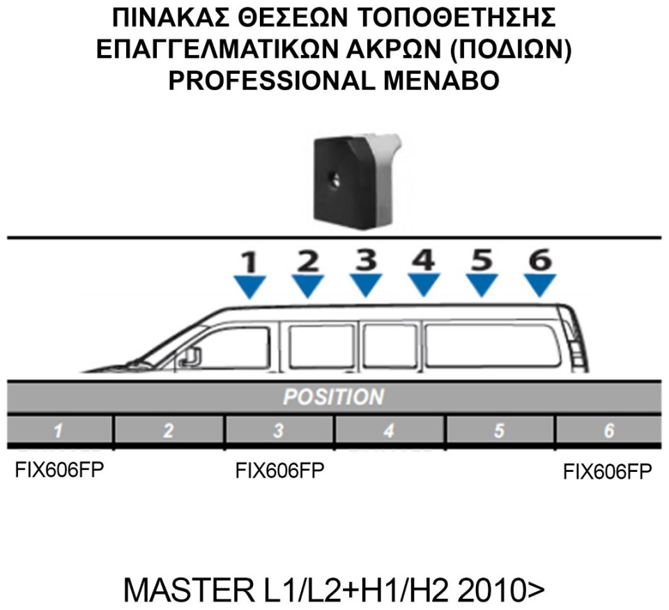 RENAULT MASTER L1/L2+H1/H2 1997>2010> KIT ΜΕ ΕΠΑΓΓΕΛΜΑΤΙΚΕΣ ΜΠΑΡΕΣ ΟΡΟΦΗΣ ΑΛΟΥΜΙΝΙΟΥ MENABO (8450/MB X 3 - FIX606FP X 3)