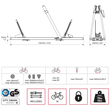 Το πλαίσιο της είναι κατασκευασμένο από αλουμίνιο υψηλής ποιότητας με ρυθμιζόμενο βραχίονα, αναδιπλούμενο για να παραμένει κλειστή στην οροφή ή να αποθηκεύεται εύκολα χωρίς να πιάνει χώρο, όταν δεν είναι σε χρήση και εξοπλισμένο με αντικλεπτικό σύστημα ασφαλείας για προστασία του ποδηλάτου που συγκρατεί κατά τη μεταφορά χωρίς τον κίνδυνο κλοπής σε πιθανή περίπτωση στάσης.