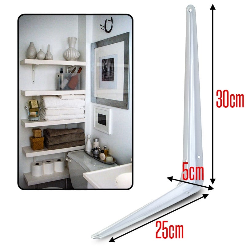 Λευκή Γωνία Στήριξης Ραφιών Υψηλής Αντοχής Ιδανική για τη στήριξη ελαφριών ή μεσαίων ραφιών, ακόμη και σε κλειστούς χώρους.Μπορεί να υποστηρίξει και μεγαλύτερα ράφια με βαρύτερα φορτία αρκεί να αυξήσουμε τον αριθμό των γωνιών που τοποθετούμε σε κάθε ράφι. Χαρακτηριστικά: Υλικό: Χάλυβας Χρώμα: Λευκό με εποξική βαφή Διάσταση: 30 x 25 x 5cm DOA 14 Ημερών
