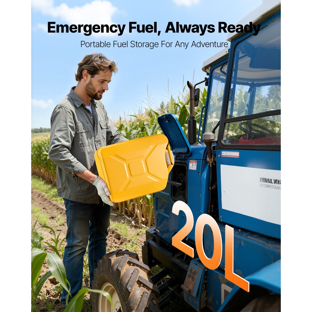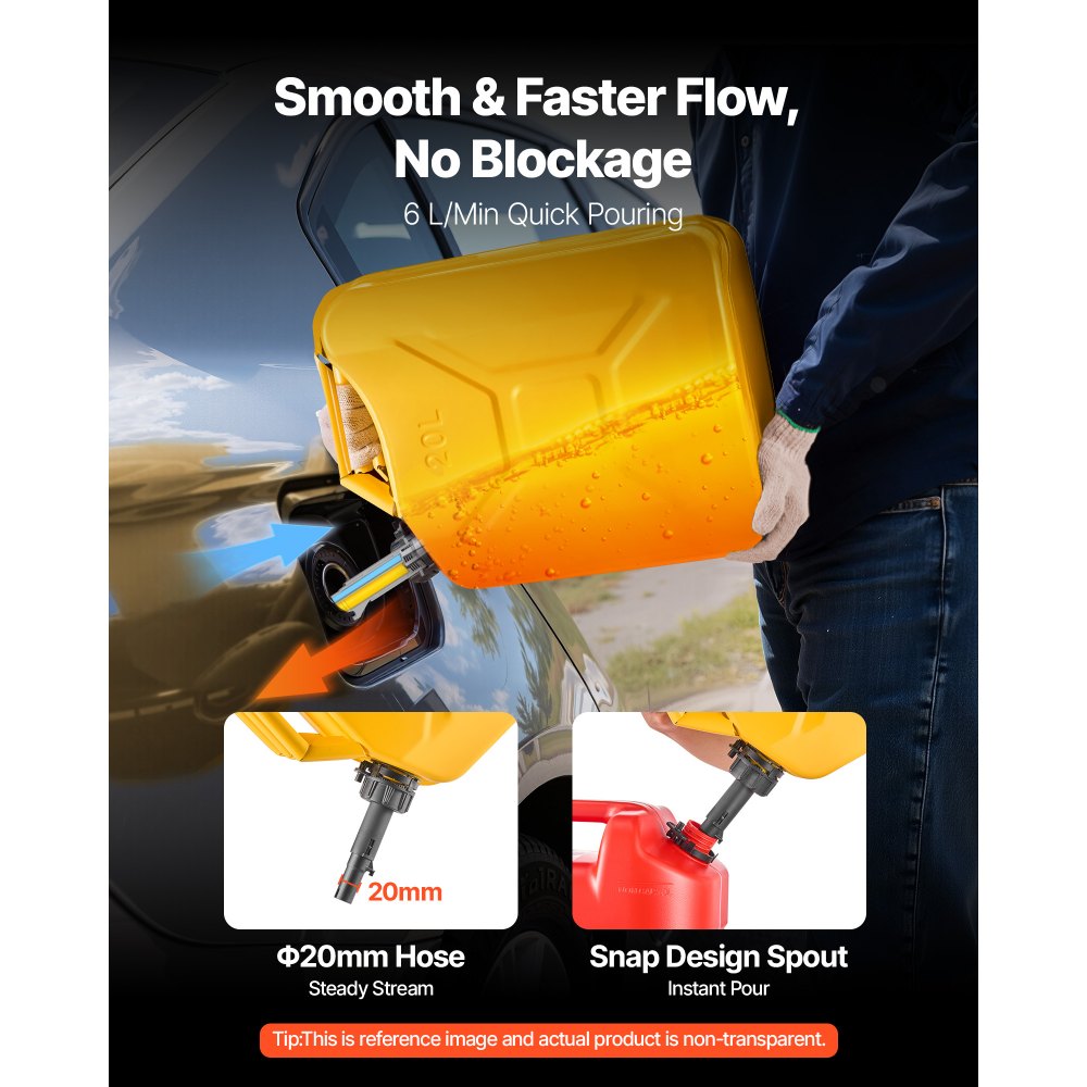 Συμπαγές μέγεθος: Χρειάζεστε επιπλέον καύσιμο εν κινήσει; Αυτό το μεταλλικό φιαλίδιο βενζίνης 5,3 γαλονιών/20 λίτρων (14,2 x 7,1 x 20,1 ίντσες) χωράει εύκολα στο πορτμπαγκάζ σας. Ελαφρύ αλλά πρακτικό, είναι ιδανικό για οδικά ταξίδια, κάμπινγκ ή υπαίθριες εργασίες. Ασφαλής αντι-χαλάρωση: Κουραστήκατε τις διαρροές; Αυτό το μεταλλικό δοχείο καυσίμου διαθέτει δακτύλιο στεγανοποίησης που δεν στεγανοποιεί ακόμα και σε δύσκολες διαδρομές, διατηρώντας κάθε σταγόνα ασφαλή και μειώνοντας τη σπατάλη καυσίμου. Ομαλή, γρήγορη ροή 6 λίτρων/λεπτό: Απεχθάνεστε τις αργές, ακατάστατες αναπληρώσεις; Αυτό το μεταλλικό δοχείο με τζετ παρέχει έως και 6 λίτρα/λεπτό με φαρδύ σωλήνα 20 mm και στόμιο με κούμπωμα, προσφέροντάς σας ομαλή ροή χωρίς πιτσιλιές, χωρίς το ενοχλητικό "κόλλημα". Ανθεκτική κατασκευή στρατιωτικού τύπου: Ψάχνετε για ανθεκτικότητα; Αυτό το δοχείο καυσίμου χρησιμοποιεί χάλυβα ψυχρής έλασης 0,8 mm που αντέχει σε πτώσεις, χτυπήματα και ήλιο. Ένα στόμιο επέκτασης από PP κάνει κάθε αναπλήρωση εύκολη και καθαρή. Ευρεία γκάμα εφαρμογών: Πού χρειάζεστε καύσιμο; Είτε πρόκειται για κάμπινγκ, οδήγηση εκτός δρόμου, βαρκάδα ή εργασίες στο γκαζόν, αυτό το μεταλλικό δοχείο καυσίμου είναι κατασκευασμένο για οδηγούς, λάτρεις της περιπέτειας και ιδιοκτήτες σπιτιού.