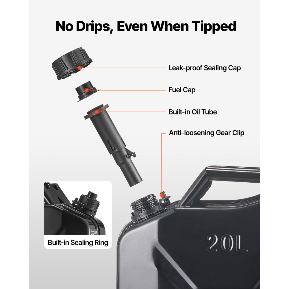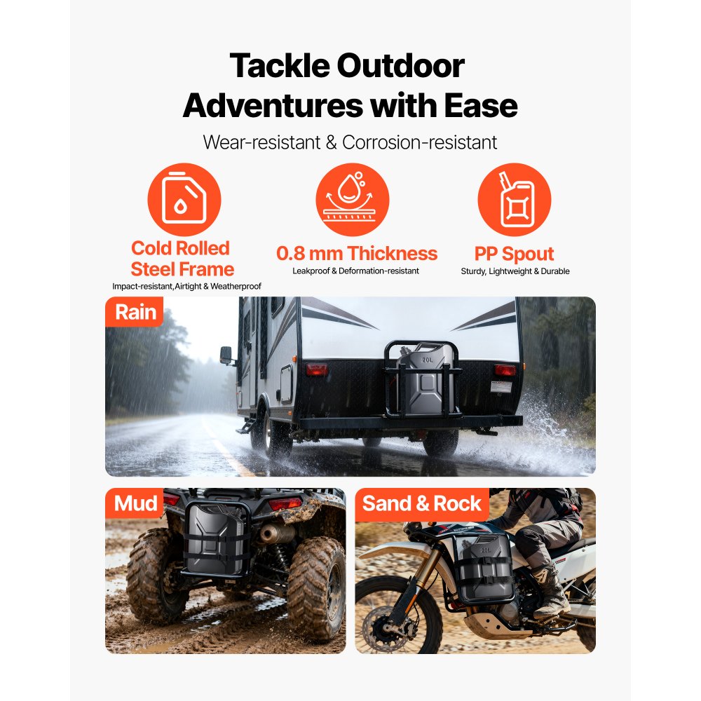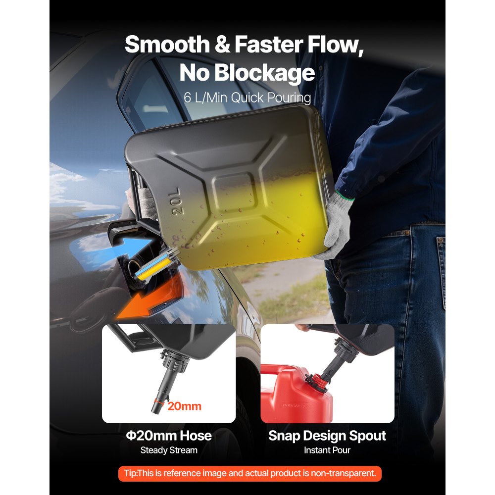 Συμπαγές μέγεθος: Χρειάζεστε επιπλέον καύσιμο εν κινήσει; Αυτό το μεταλλικό φιαλίδιο βενζίνης 5,3 γαλονιών/20 λίτρων (14,2 x 7,1 x 20,1 ίντσες) χωράει εύκολα στο πορτμπαγκάζ σας. Ελαφρύ αλλά πρακτικό, είναι ιδανικό για οδικά ταξίδια, κάμπινγκ ή υπαίθριες εργασίες. Ασφαλής αντι-χαλάρωση: Κουραστήκατε τις διαρροές; Αυτό το μεταλλικό δοχείο καυσίμου διαθέτει δακτύλιο στεγανοποίησης που δεν στεγανοποιεί ακόμα και σε δύσκολες διαδρομές, διατηρώντας κάθε σταγόνα ασφαλή και μειώνοντας τη σπατάλη καυσίμου. Ομαλή, γρήγορη ροή 6 λίτρων/λεπτό: Απεχθάνεστε τις αργές, ακατάστατες αναπληρώσεις; Αυτό το μεταλλικό δοχείο με τζετ παρέχει έως και 6 λίτρα/λεπτό με φαρδύ σωλήνα 20 mm και στόμιο με κούμπωμα, προσφέροντάς σας ομαλή ροή χωρίς πιτσιλιές, χωρίς το ενοχλητικό "κόλλημα". Ανθεκτική κατασκευή στρατιωτικού τύπου: Ψάχνετε για ανθεκτικότητα; Αυτό το δοχείο καυσίμου χρησιμοποιεί χάλυβα ψυχρής έλασης 0,8 mm που αντέχει σε πτώσεις, χτυπήματα και ήλιο. Ένα στόμιο επέκτασης από PP κάνει κάθε αναπλήρωση εύκολη και καθαρή. Ευρεία γκάμα εφαρμογών: Πού χρειάζεστε καύσιμο; Είτε πρόκειται για κάμπινγκ, οδήγηση εκτός δρόμου, βαρκάδα ή εργασίες στο γκαζόν, αυτό το μεταλλικό δοχείο καυσίμου είναι κατασκευασμένο για οδηγούς, λάτρεις της περιπέτειας και ιδιοκτήτες σπιτιού.