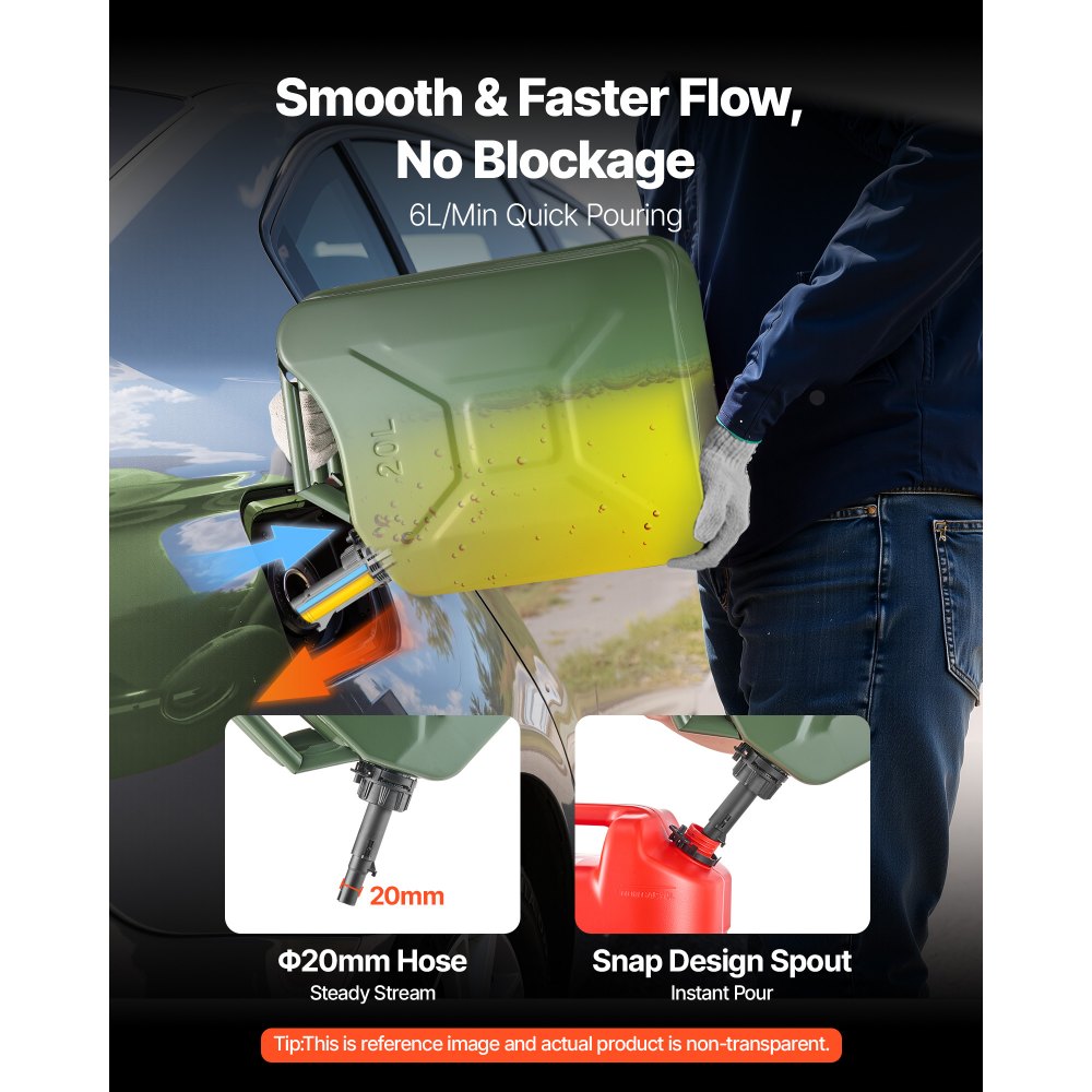 Συμπαγές μέγεθος: Χρειάζεστε επιπλέον καύσιμο εν κινήσει; Αυτό το μεταλλικό φιαλίδιο βενζίνης 5,3 γαλονιών/20 λίτρων (14,2 x 7,1 x 20,1 ίντσες) χωράει εύκολα στο πορτμπαγκάζ σας. Ελαφρύ αλλά πρακτικό, είναι ιδανικό για οδικά ταξίδια, κάμπινγκ ή υπαίθριες εργασίες. Ασφαλής αντι-χαλάρωση: Κουραστήκατε τις διαρροές; Αυτό το μεταλλικό δοχείο καυσίμου διαθέτει δακτύλιο στεγανοποίησης που δεν στεγανοποιεί ακόμα και σε δύσκολες διαδρομές, διατηρώντας κάθε σταγόνα ασφαλή και μειώνοντας τη σπατάλη καυσίμου. Ομαλή, γρήγορη ροή 6 λίτρων/λεπτό: Απεχθάνεστε τις αργές, ακατάστατες αναπληρώσεις; Αυτό το μεταλλικό δοχείο με τζετ παρέχει έως και 6 λίτρα/λεπτό με φαρδύ σωλήνα 20 mm και στόμιο με κούμπωμα, προσφέροντάς σας ομαλή ροή χωρίς πιτσιλιές, χωρίς το ενοχλητικό "κόλλημα". Ανθεκτική κατασκευή στρατιωτικού τύπου: Ψάχνετε για ανθεκτικότητα; Αυτό το δοχείο καυσίμου χρησιμοποιεί χάλυβα ψυχρής έλασης 0,8 mm που αντέχει σε πτώσεις, χτυπήματα και ήλιο. Ένα στόμιο επέκτασης από PP κάνει κάθε αναπλήρωση εύκολη και καθαρή. Ευρεία γκάμα εφαρμογών: Πού χρειάζεστε καύσιμο; Είτε πρόκειται για κάμπινγκ, οδήγηση εκτός δρόμου, βαρκάδα ή εργασίες στο γκαζόν, αυτό το μεταλλικό δοχείο καυσίμου είναι κατασκευασμένο για οδηγούς, λάτρεις της περιπέτειας και ιδιοκτήτες σπιτιού.