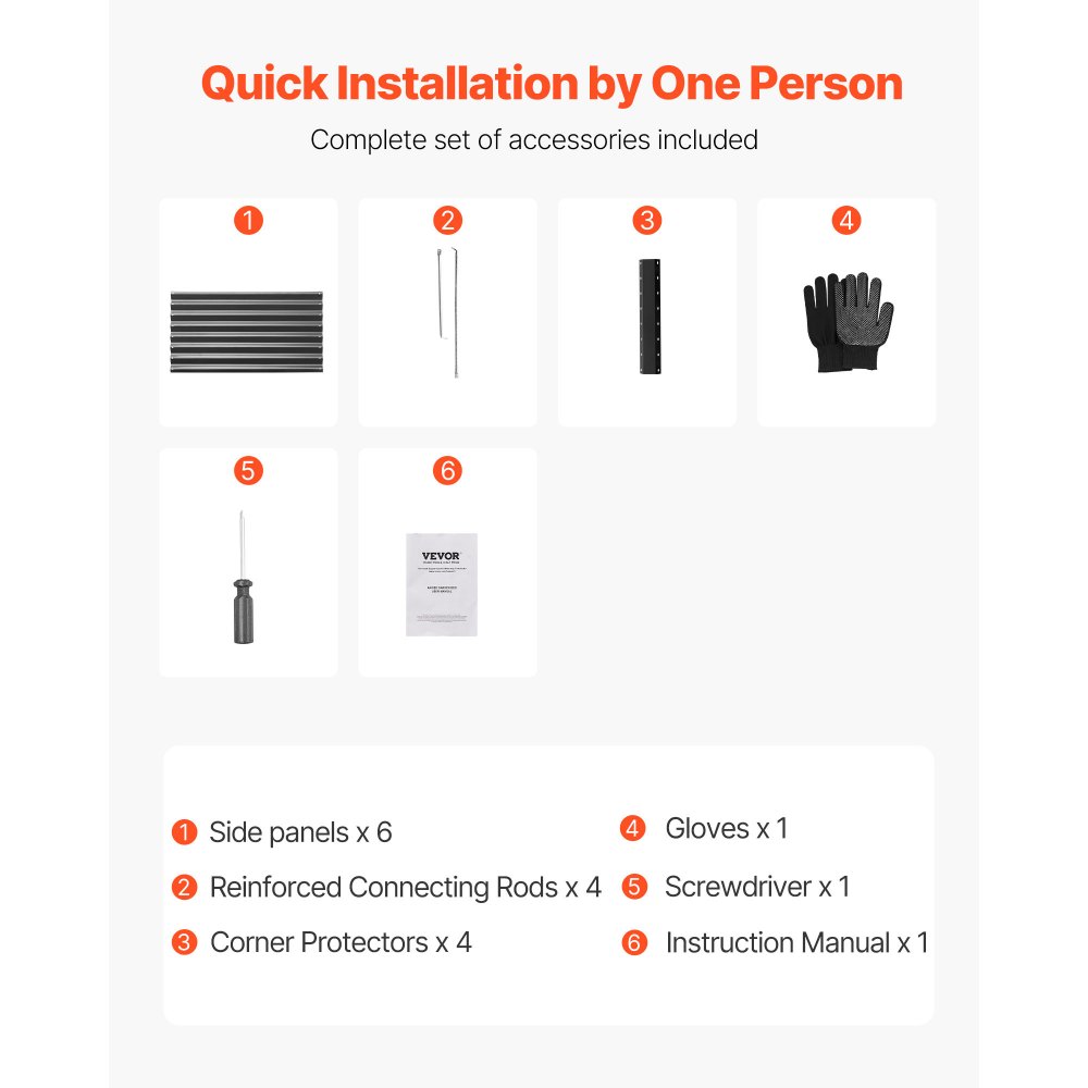 Δημιουργήστε έναν εκπληκτικό κήπο: Το υπερυψωμένο παρτέρι μας 6,7 x 3 x 1,5 ποδιών παρέχει άφθονο χώρο ανάπτυξης για τα φυτά σας. Το βάθος του 1,5 ποδιού είναι ιδανικό για διάφορα φυτά. Καλλιεργήστε λαχανικά, φρούτα, λουλούδια και βότανα σε κήπους, αγροκτήματα, χωράφια ή ανοιχτούς χώρους. Ανθεκτικό και αξιόπιστο: Κατασκευασμένο από γαλβανισμένα πάνελ 0,4 mm, ανθεκτικά στη σκουριά, με ηλεκτροστατική βαφή πούδρας, αυτό το μεταλλικό υπερυψωμένο παρτέρι κήπου είναι στιβαρό και κατασκευασμένο για να διαρκεί. Σχεδιασμένο για μακροχρόνια χρήση σε εξωτερικούς χώρους, είναι έτοιμο να αντέξει τα στοιχεία της φύσης και να υποστηρίξει την κηπουρική σας όλο το χρόνο. Ασφαλής χρήση: Η υπερυψωμένη γλάστρα μας διαθέτει κυλιόμενες άκρες και στρογγυλεμένες γωνίες για να μειωθεί η πιθανότητα τραυματισμού κατά τη χρήση. Συνοδεύεται επίσης από ένα ζευγάρι γάντια για την ελαχιστοποίηση των γρατζουνιών από τα χέρια, επιτρέποντάς σας να απολαμβάνετε μια ομαλή εμπειρία κηπουρικής. Εύκολη εγκατάσταση: Με ολοκληρωμένες βίδες και προ-τρυπημένο σχεδιασμό, το υπερυψωμένο παρτέρι μπορεί να συναρμολογηθεί εύκολα ακολουθώντας το εγχειρίδιο. Χρειάζονται μόνο 15 λεπτά για να τοποθετηθεί χωρίς να απαιτούνται επιπλέον εργαλεία, καθιστώντας το ιδανικό για λάτρεις της κηπουρικής, ακόμη και για αρχάριους. Τι θα πάρετε: Το υπερυψωμένο παρτέρι μας περιλαμβάνει 6 πλαϊνά πάνελ, 4 ενισχυμένες μπιέλες, 4 προστατευτικά γωνιών, 1 ζευγάρι γάντια, 1 κατσαβίδι και 1 εγχειρίδιο χρήστη