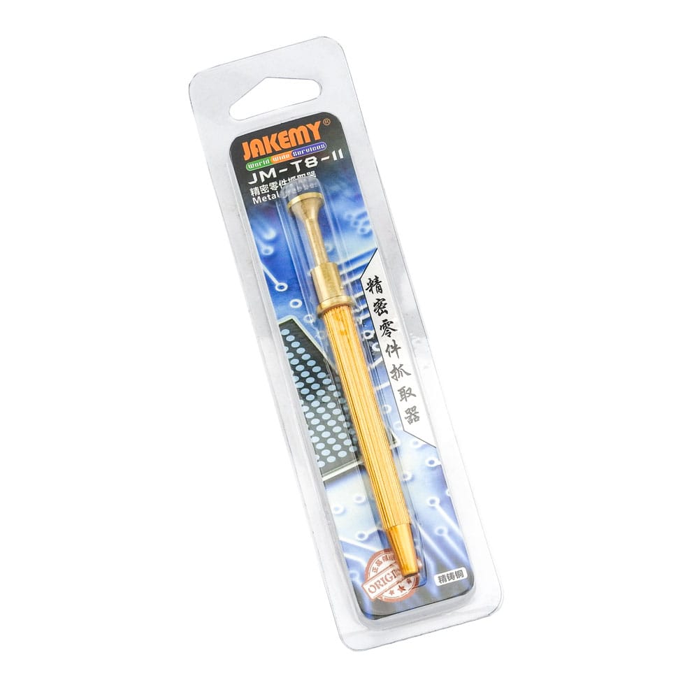 Μεταλλικός συλλέκτης JM-T8-11 από την JAKEMY. Ένας μεταλλικός συλλέκτης με δαγκάνα μεγάλης ακριβείας. Δεν τραυματίζει τα διάφορα εξαρτήματα τα οποία είναι ικανός να πιαστεί. Χαρακτηριστικά: Δεν είναι εύκολο να πέσει κάτι μικροσκοπικό από την τσιμπίδα χάρη στις τέσσερις άκρες οι οποίες συγκρατούν γερά το αντικείμενο το οποίο θέλετε να ανακτήσετε η να κρατήσετε σταθερό για την εργασία σας Η ανάκτηση τον μικροσκοπικών αντικειμένων και εξαρτημάτων γίνετε με εξαιρετική ακρίβεια Δεν κάνει ζημιά στα διάφορα εξαρτήματα που μπορεί να πιάσει Διαστάσεις: 112 X 10 X 10mm Υλικό κατασκευής: Ραφιναρισμένος Χαλκός DOA 14 ημερών