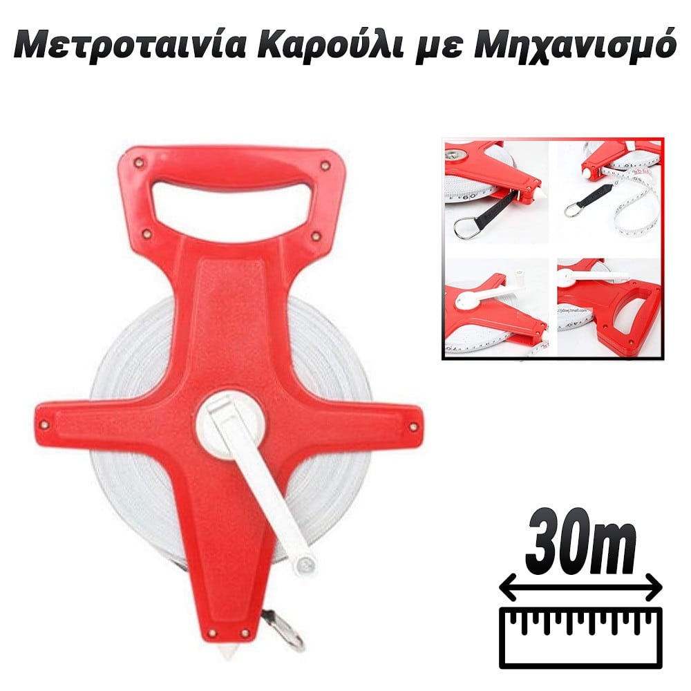 Η Μετροταινία Καρούλι με Μηχανισμό 30m είναι το ιδανικό εργαλείο για ακριβείς μετρήσεις σε κατασκευαστικά έργα, ανακαινίσεις ή κηπουρικές δραστηριότητες. Διαθέτει μηχανισμό επαναφοράς που διευκολύνει την αποθήκευση της ταινίας και την επαναφορά της στη θέση της χωρίς ταλαιπωρία. Το καρούλι εξασφαλίζει άνετη χρήση και εύκολη μεταφορά, ενώ η ταινία των 30 μέτρων παρέχει αρκετή εμβέλεια για να καλύψει μεγάλες αποστάσεις. Χαρακτηριστικά: Μήκος Ταινίας: 30 μέτρα, κατάλληλο για μετρήσεις μεσαίων και μεγάλων αποστάσεων. Μηχανισμός Επαναφοράς: Εύκολη και γρήγορη επαναφορά της ταινίας στο καρούλι. Ανθεκτική Κατασκευή: Η ταινία και το καρούλι κατασκευάζονται από υλικά υψηλής ποιότητας για αυξημένη ανθεκτικότητα. Άνετη Λαβή: Η εργονομική λαβή επιτρέπει άνετη και σταθερή χρήση κατά τη διάρκεια των μετρήσεων. Ιδανική για κάθε επαγγελματία ή ερασιτέχνη που χρειάζεται μια αξιόπιστη και εύχρηστη μετροταινία για ακριβείς μετρήσεις σε κάθε τύπο έργου.