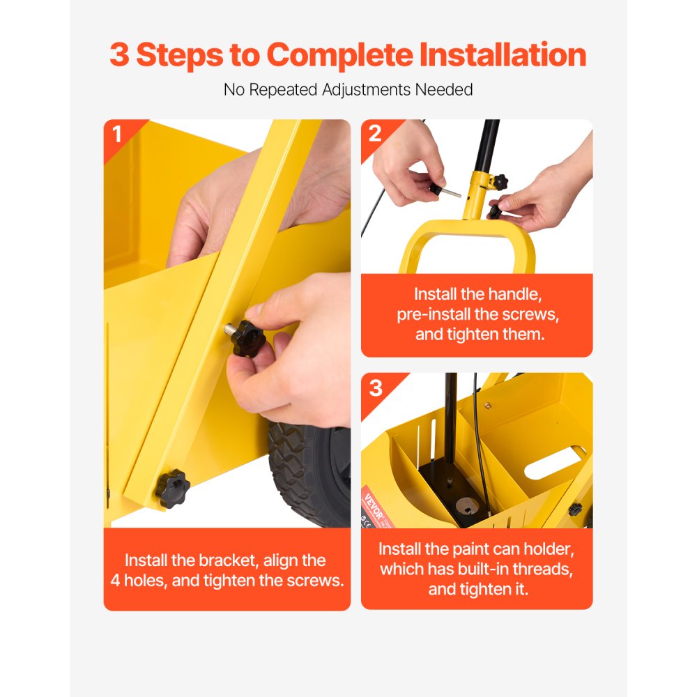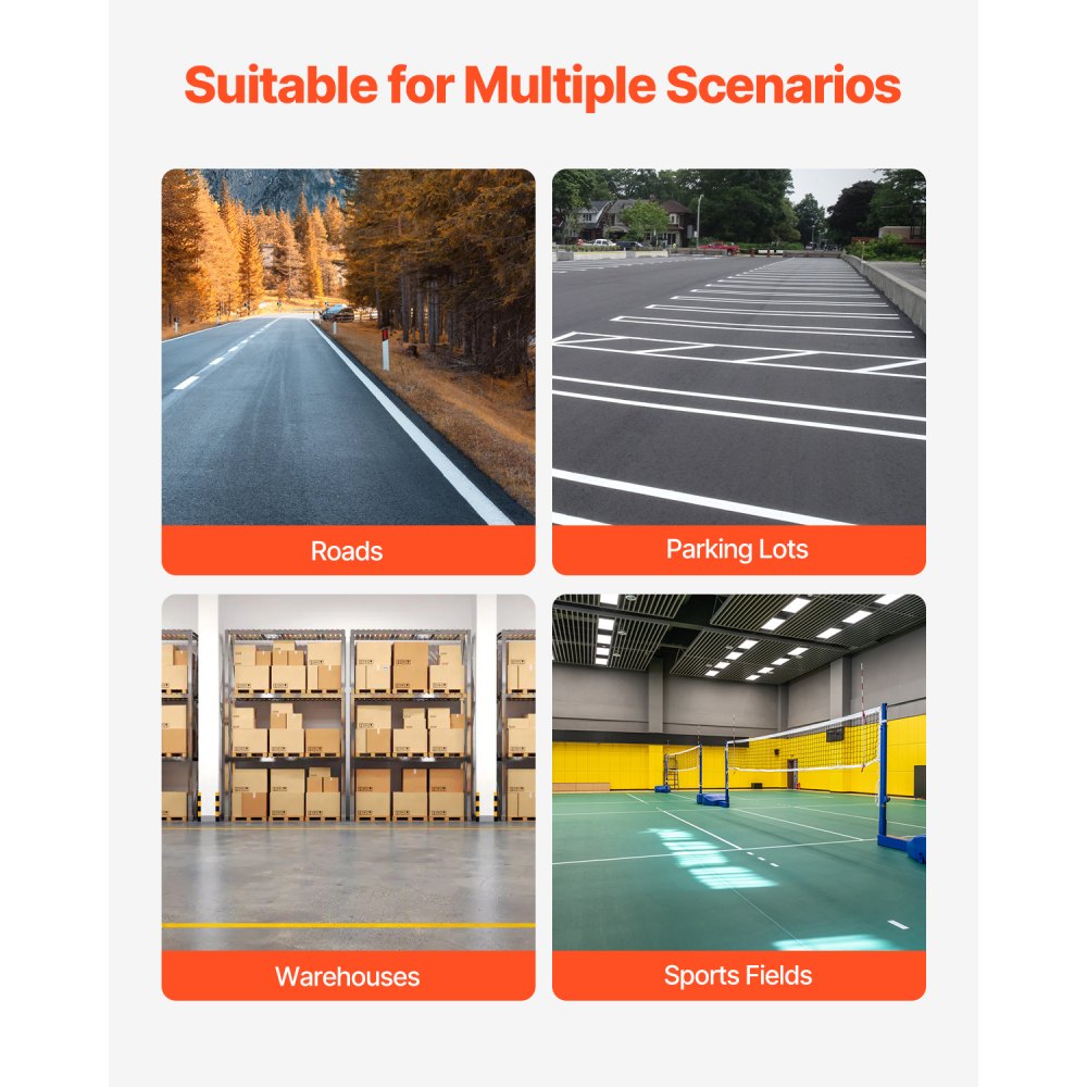 Εφέ καθαρής σήμανσης γραμμών ακμής: Η μηχανή σήμανσης γραμμών μας μπορεί να σχεδιάσει γρήγορα και με ακρίβεια καθαρές γραμμές στο έδαφος, βοηθώντας σας να διαχωρίσετε και να καθοδηγήσετε διαφορετικές περιοχές. Σημείωση: Περιλαμβάνει μόνο μία μηχανή σήμανσης γραμμών, δεν περιλαμβάνεται χρώμα. Ρυθμιζόμενο πλάτος γραμμής 2–4 ιντσών: Αλλάξτε το ύψος του δοχείου χρώματος για να ρυθμίσετε το πλάτος της γραμμής. Χρησιμοποιήστε μόνο δοχείο χρώματος τύπου Τ για αυτό το μηχάνημα—αποφύγετε τα ακροφύσια με ευθεία προς τα πάνω ή ευθεία προς τα κάτω. Ευθυγραμμίστε το ακροφύσιο τύπου Τ παράλληλα με την υποδοχή σχήματος U για ακριβείς ρίγες 2–4 ιντσών. Όταν υπάρχει λιγότερο χρώμα στο δοχείο, ρυθμίστε το ύψος για να προσαρμοστεί στο πλάτος της λωρίδας. Φορητός χώρος αποθήκευσης: Η μηχανή ρίψης χρωμάτων μας διαθέτει έναν επιπλέον χώρο αποθήκευσης για γρήγορες αλλαγές δοχείων χρώματος ή αλλαγή χρώματος. Μπορεί επίσης να αποθηκεύσει άλλα εργαλεία και αξεσουάρ που χρησιμοποιούνται συνήθως, επιτρέποντάς σας εύκολη πρόσβαση σε όλα όσα χρειάζεστε κατά τη διάρκεια της εργασίας. Ευέλικτη χρήση: Αυτή η βαρέως τύπου μηχανή σήμανσης γραμμών μπορεί να χρησιμοποιηθεί σε χώρους στάθμευσης, αποθήκες, αθλητικά γήπεδα και άλλα. Είναι ιδανική για άσφαλτο, σκυρόδεμα, γρασίδι κ.λπ. Ο πτυσσόμενος σχεδιασμός εξασφαλίζει εύκολη μεταφορά και αποθήκευση. Εύκολη εγκατάσταση: Η συσκευασία περιλαμβάνει οδηγίες εγκατάστασης, καθιστώντας πολύ εύκολη την εγκατάσταση του μηχανήματος διαγράμμισης χώρων στάθμευσης. Τόσο η εγκατάσταση όσο και η λειτουργία είναι απλές, έτσι ώστε ακόμη και οι αρχάριοι να μπορούν εύκολα να το εξοικειωθούν.