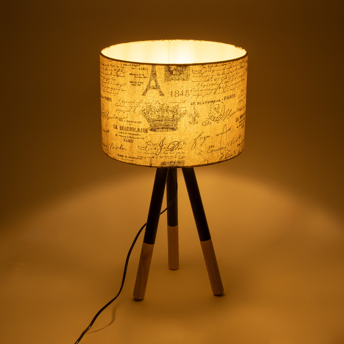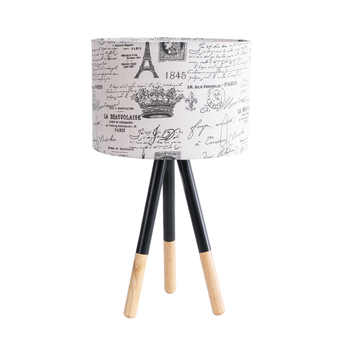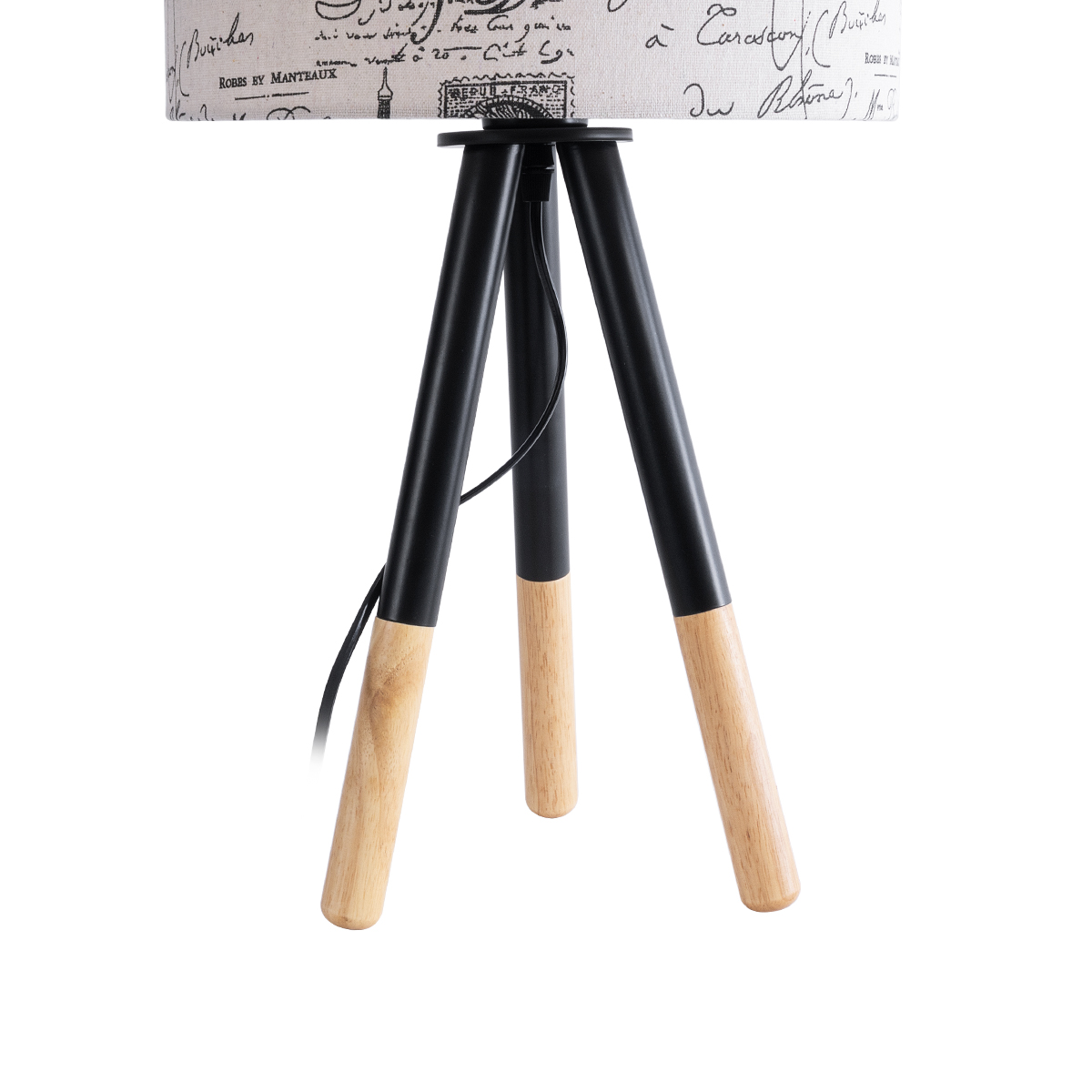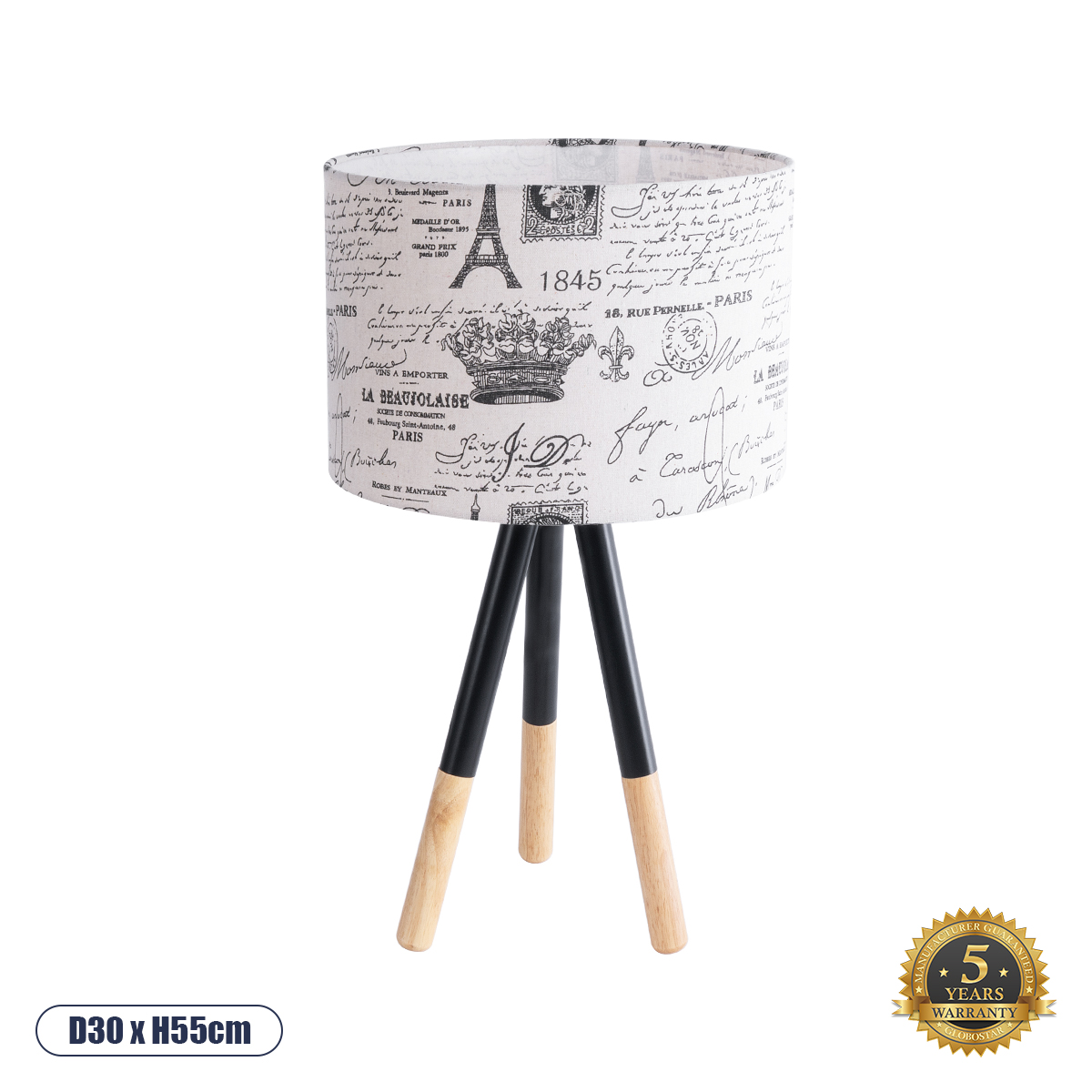 GloboStar® MAGAZINE 01230 Μοντέρνο Επιτραπέζιο Φωτιστικό Πορτατίφ Μονόφωτο 1 x E27 IP20 Μπεζ & Μαύρο Ξύλο με Λευκό Ύφασμα - Μ30 x Π30 x Υ55cm