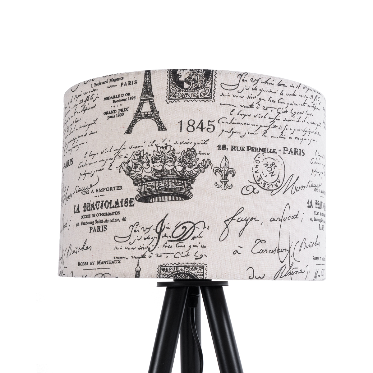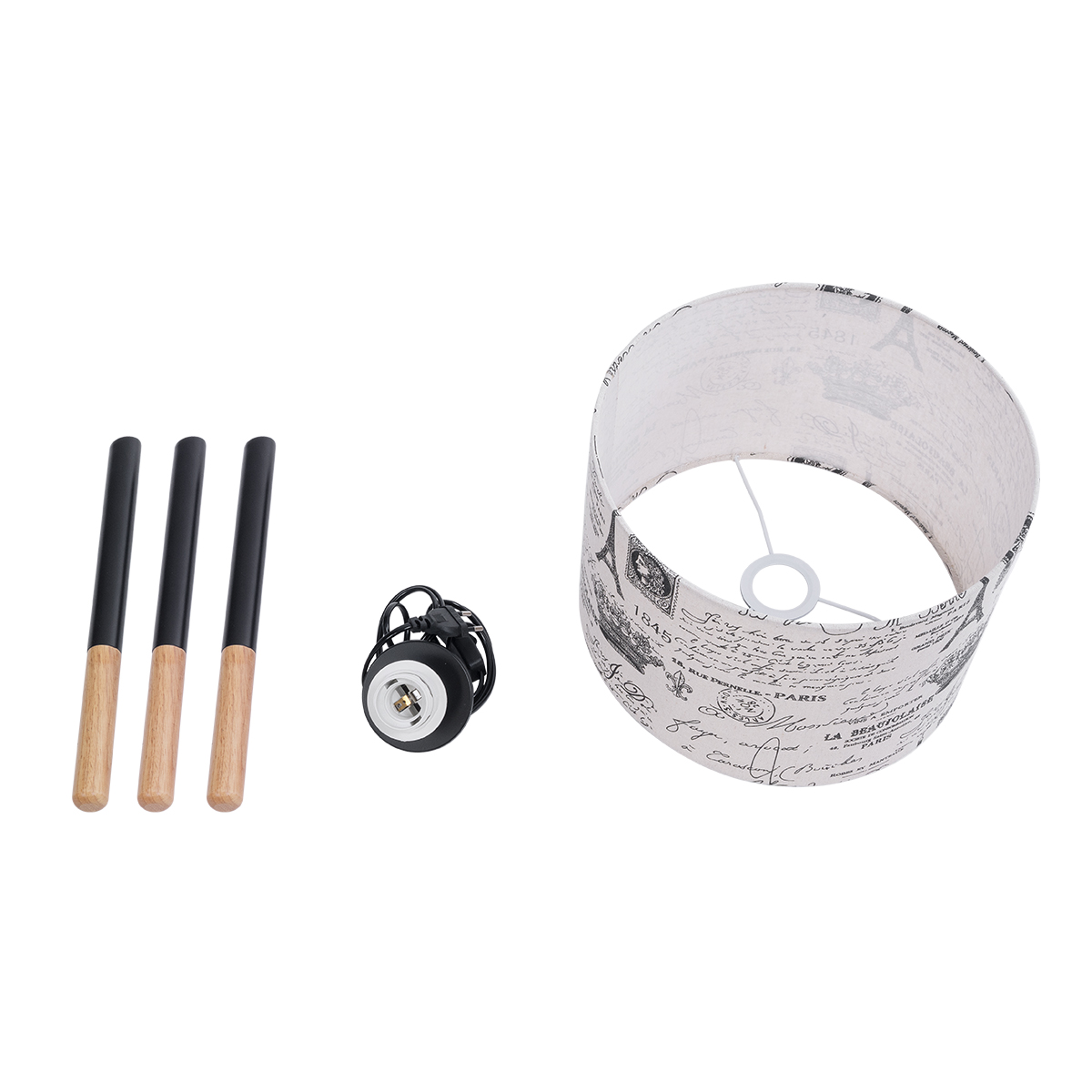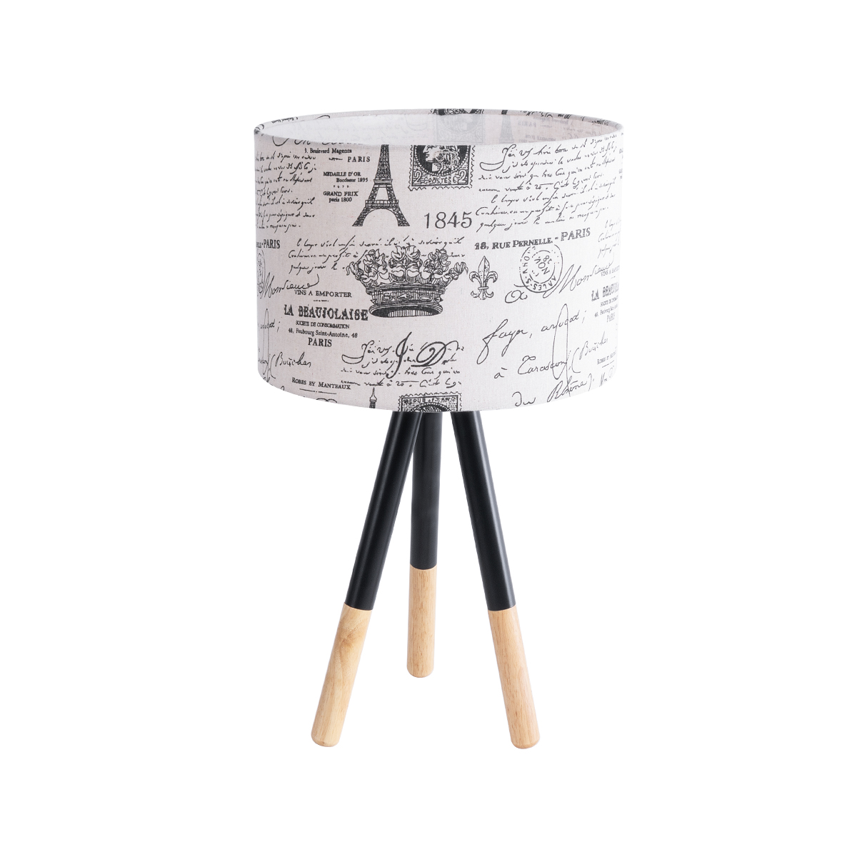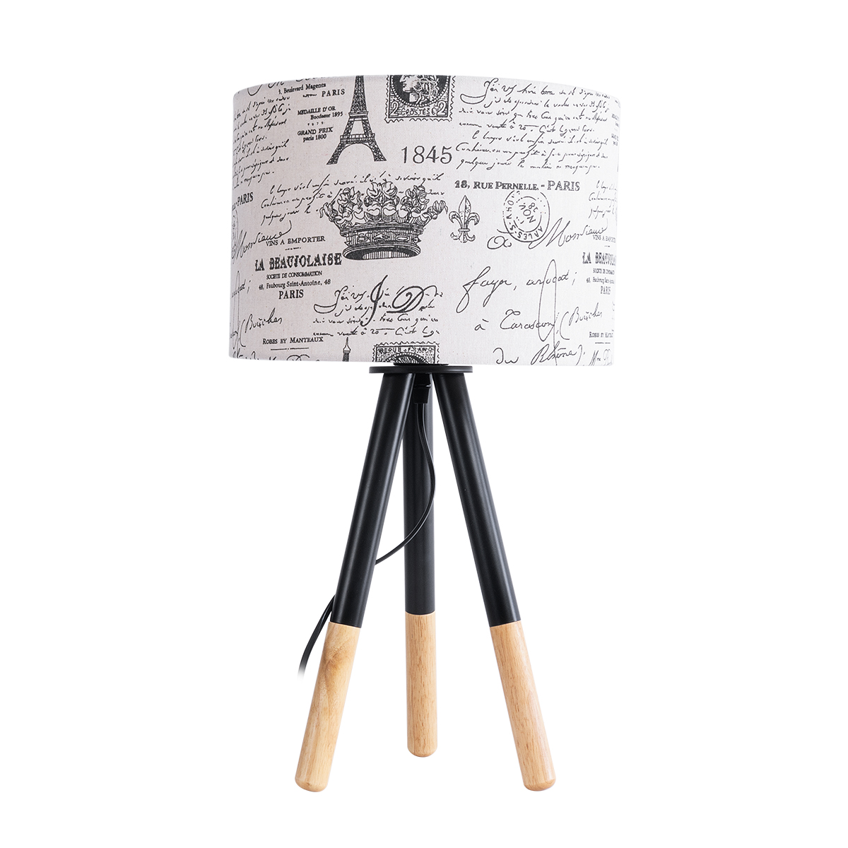GloboStar® MAGAZINE 01230 Μοντέρνο Επιτραπέζιο Φωτιστικό Πορτατίφ Μονόφωτο 1 x E27 IP20 Μπεζ & Μαύρο Ξύλο με Λευκό Ύφασμα - Μ30 x Π30 x Υ55cm