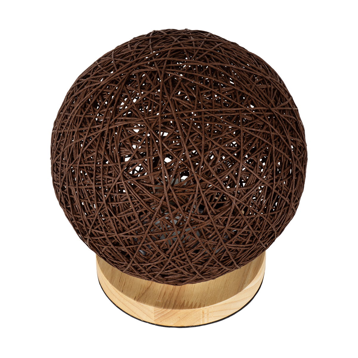 GloboStar® OCEANA 01337 Μοντέρνο Επιτραπέζιο Φωτιστικό Πορτατίφ Μονόφωτο 1 x E27 IP20 Καφέ Ρατάν με Μπεζ Ξύλο - M20 x Π20 x Υ22cm