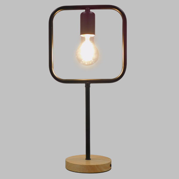GloboStar® HONOR SQUARE 01435 Μοντέρνο Επιτραπέζιο Φωτιστικό Πορτατίφ Μονόφωτο 1 x E27 IP20 Μαύρο Μέταλλο με Μπεζ Ξύλο - Μ20 x Π20 x Υ42cm