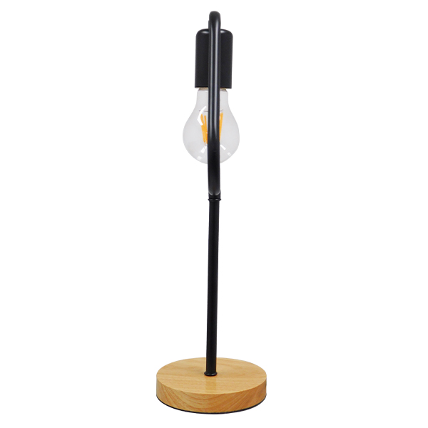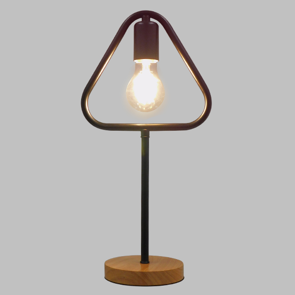 GloboStar® HONOR TRIANGLE 01436 Μοντέρνο Επιτραπέζιο Φωτιστικό Πορτατίφ Μονόφωτο 1 x E27 IP20 Μαύρο Μέταλλο με Μπεζ Ξύλο - Μ20 x Π20 x Υ40cm