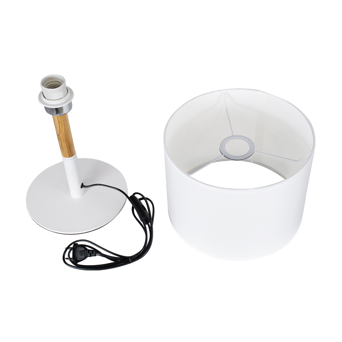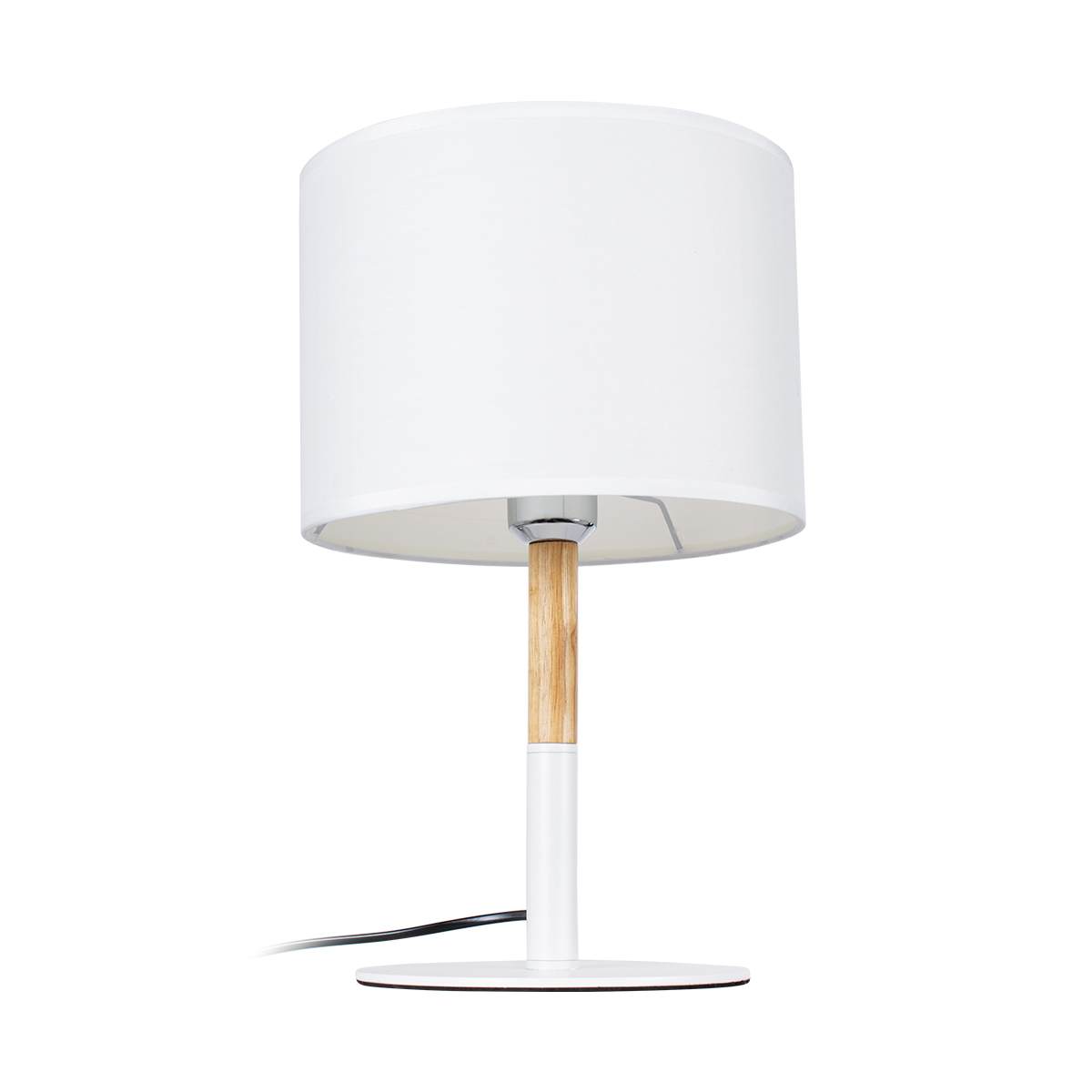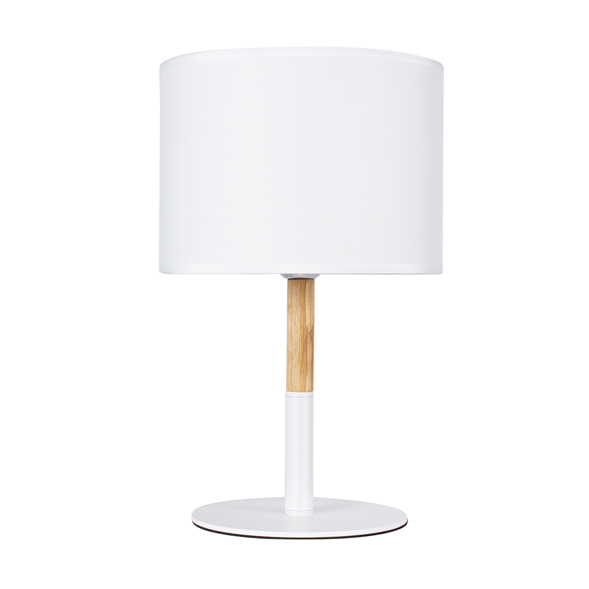 GloboStar® BRONX 01520 Μοντέρνο Επιτραπέζιο Φωτιστικό Πορτατίφ Μονόφωτο 1 x E27 IP20 Λευκό Μέταλλο, Μπεζ Ξύλο με Λευκό Ύφασμα - Μ25 x Π25 x Υ40cm