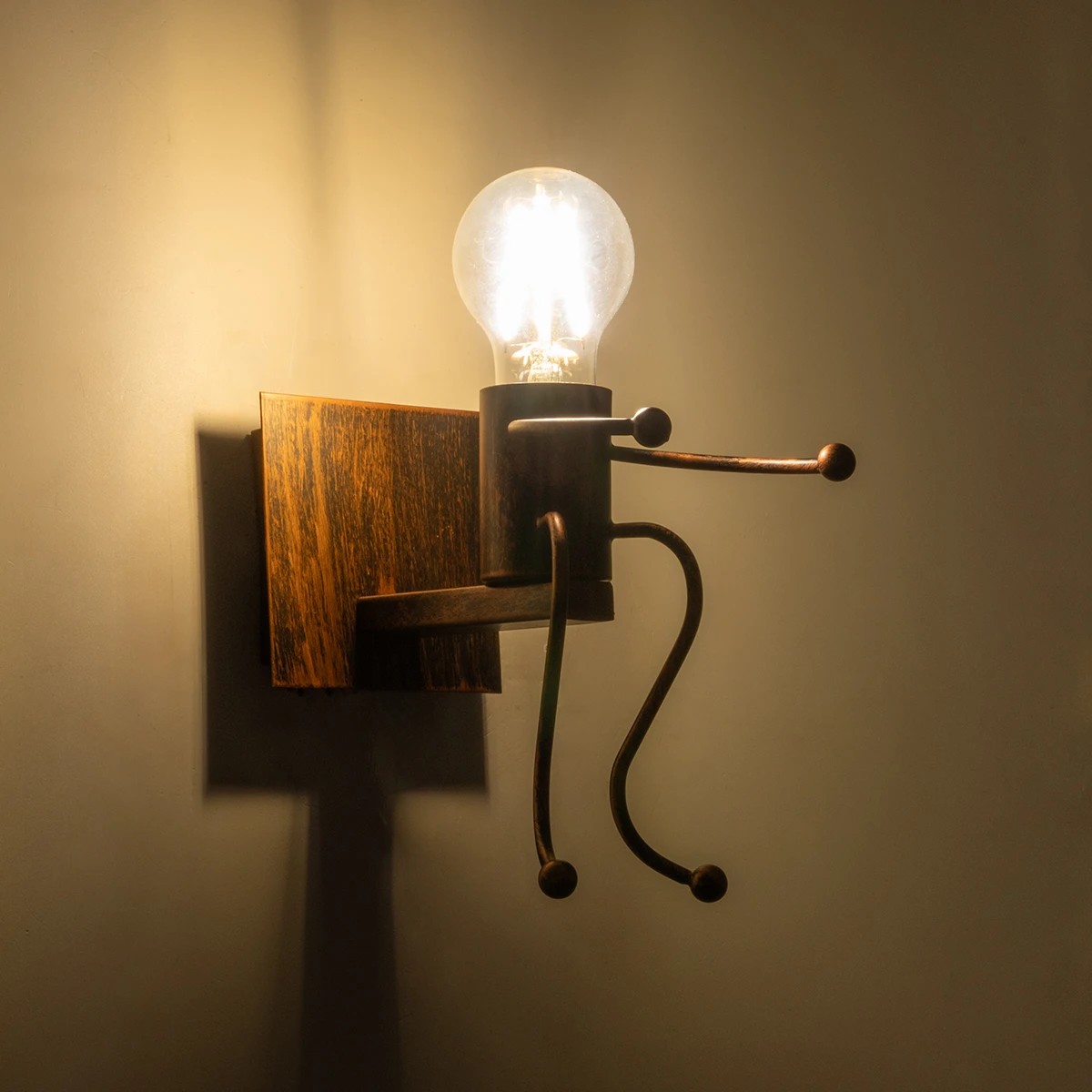 GLOBOSTAR® LITTLE MAN 01592 Μοντέρνο Φωτιστικό Τοίχου - Απλίκα με Ντουί 1 x E27 AC 220-240V IP20 - Χάλκινο - Μ12 x Π19 x Υ17cm