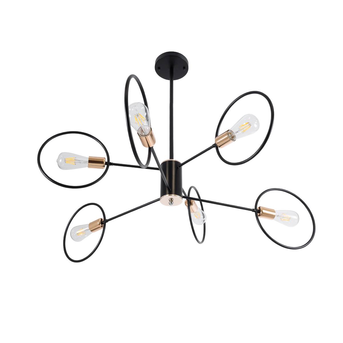 GLOBOSTAR® NEXUS 01446 Μοντέρνο Φωτιστικό Οροφής με Ντουί 6 x E27 AC 220-240V IP20 - Μαύρο & Χάλκινο - Μ105 x Π105 x Υ70cm