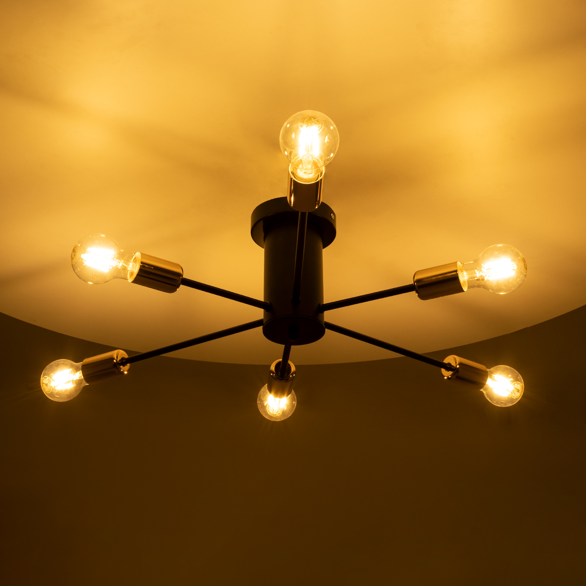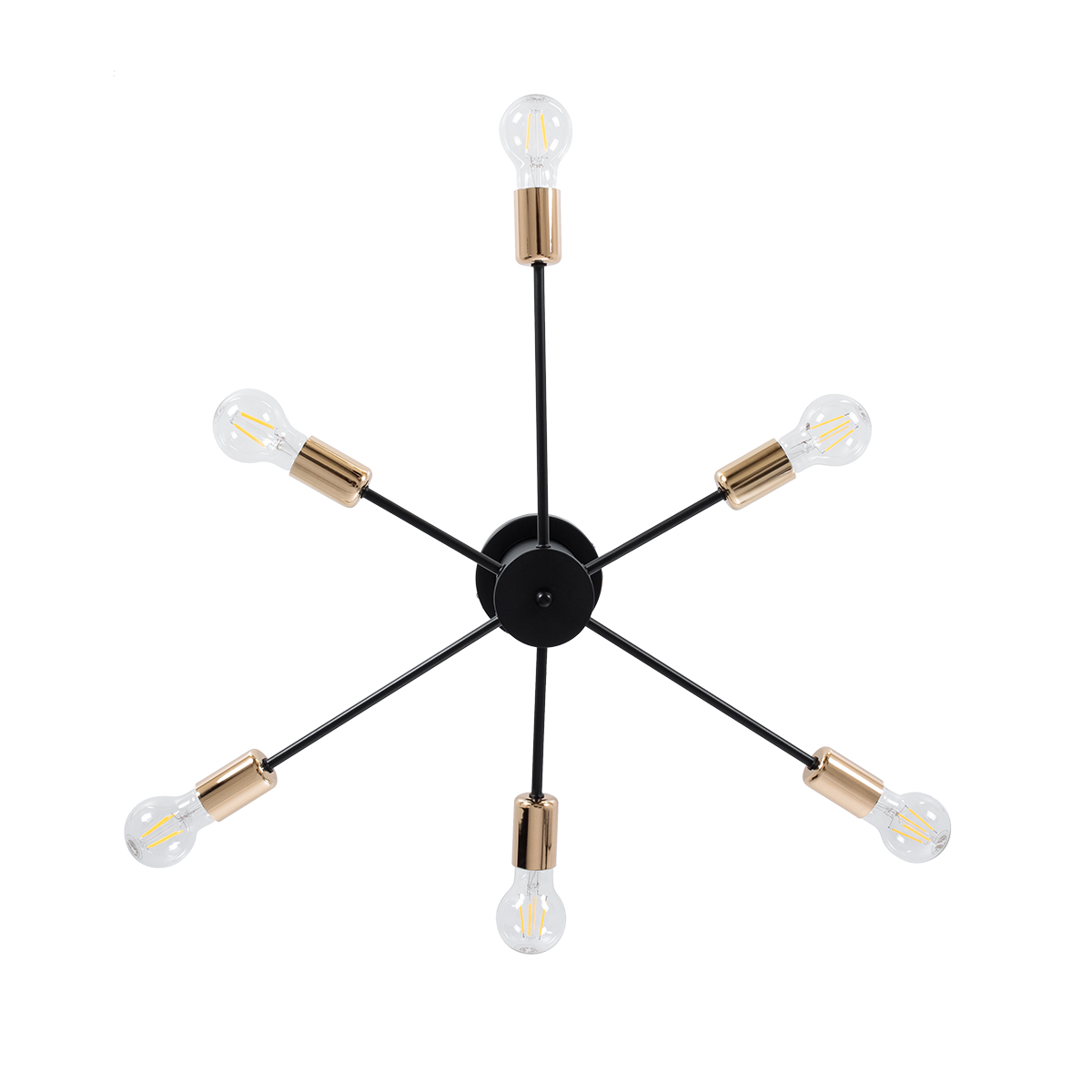 GLOBOSTAR® OLINDA 01384 Μοντέρνο Φωτιστικό Οροφής με Ντουί 6 x E27 AC 220-240V IP20 - Μαύρο & Χάλκινο - Μ60 x Π60 x Υ20cm